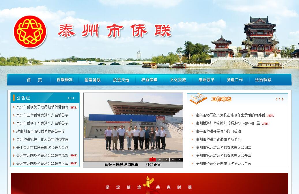 泰州市僑聯(lián)組建于1997年12月。據(jù)初步統(tǒng)計(jì),我市現(xiàn)有海外華人華僑(含港澳同胞)約3萬多人,歸僑僑眷約6萬多人,其中以改革開放以來出國的新僑、僑商和新歸僑僑眷居多。泰州市僑聯(lián)機(jī)關(guān)行政編制為4人,實(shí)有駐會機(jī)關(guān)干部6人,長期聘用人員2人。第四屆委員會現(xiàn)有主席1 名,專職副主席1名,兼職副主席3名,秘書長1名,常委13名,委員37名。設(shè)有辦公室和經(jīng)濟(jì)文化聯(lián)絡(luò)部2個內(nèi)設(shè)機(jī)構(gòu)。先后成立“泰州市僑商會”、“泰州市新華僑留學(xué)生眷屬聯(lián)誼會”、“泰州僑聯(lián)古華藝術(shù)團(tuán)”、“泰州僑聯(lián)書畫院”等僑界群眾組織,積極開展形式多樣的聯(lián)誼交流活動,促進(jìn)合作發(fā)展。建立“泰州市僑聯(lián)法律顧問委員會”、“泰州市僑聯(lián)法律服務(wù)中心”等維權(quán)機(jī)構(gòu),切實(shí)維護(hù)僑界群眾的合法權(quán)益。2015年12月28日建成“泰州僑胞之家”,并正式對外開放。