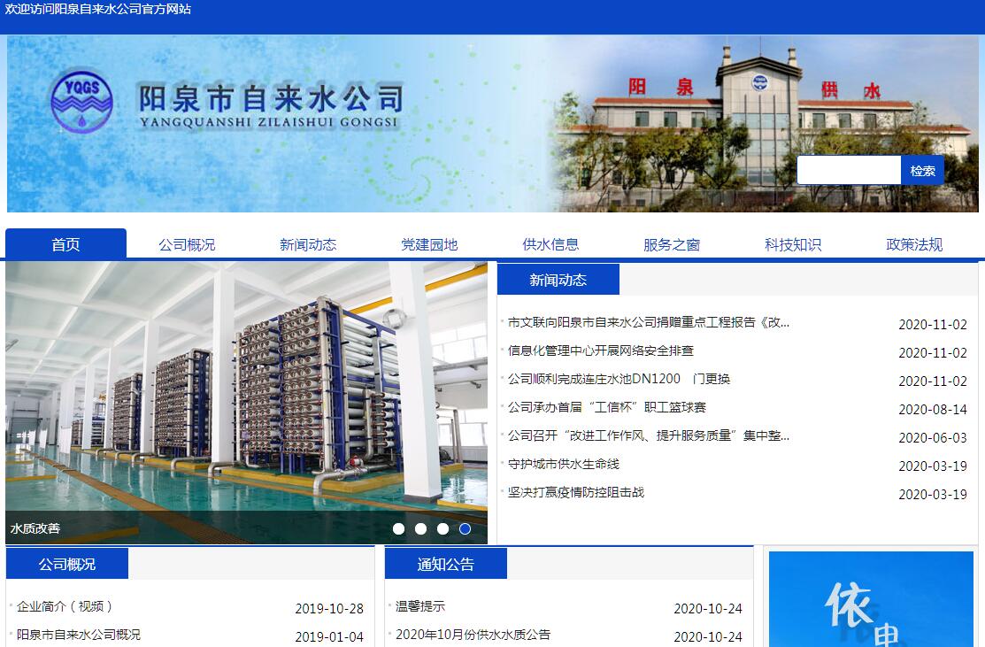 | 網(wǎng)站名稱: | 陽泉市自來水公司 | ||