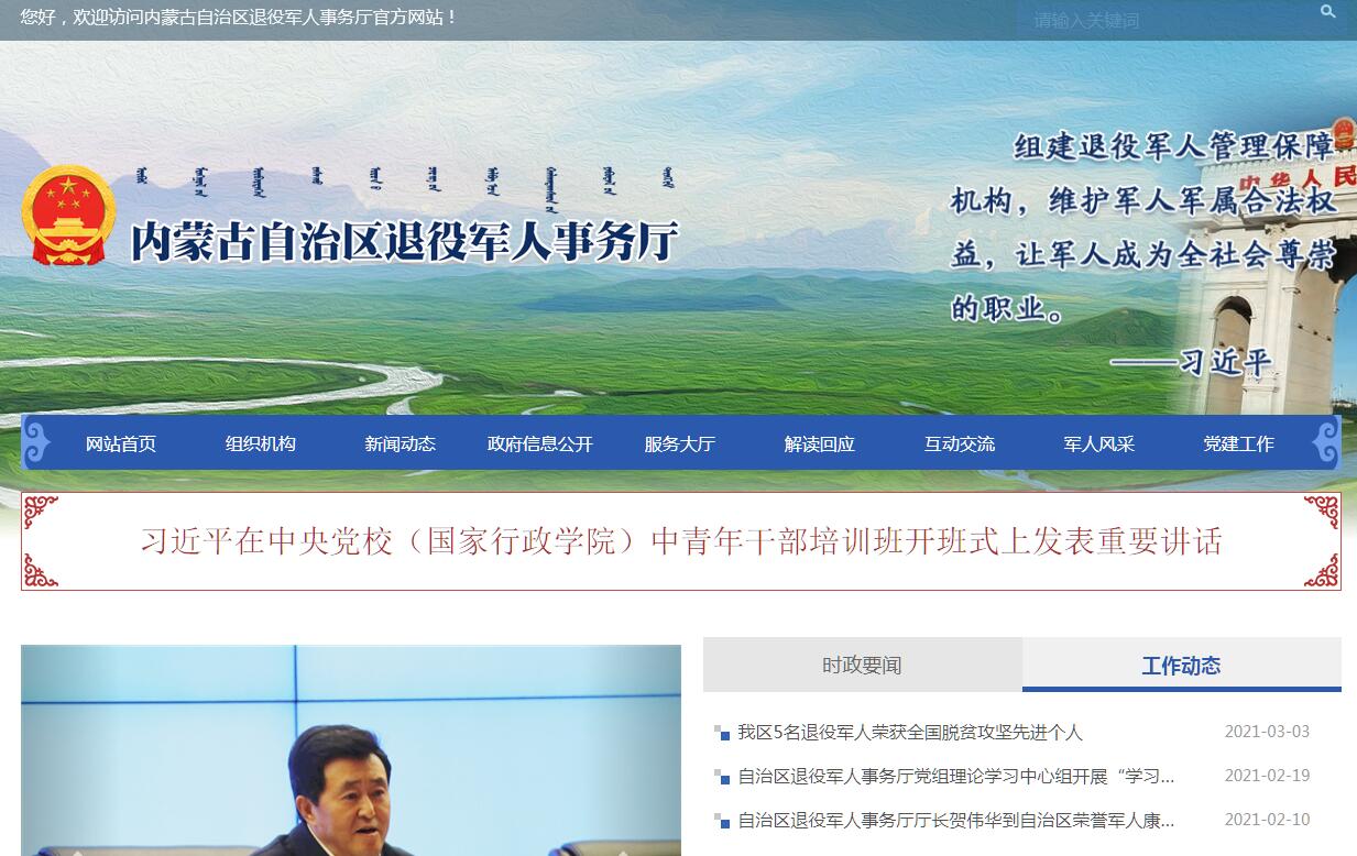 | 網(wǎng)站名稱: | 內(nèi)蒙古自治區(qū)退役軍人事務(wù)廳 | ||