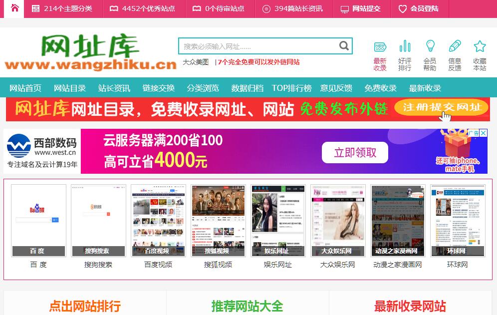 網(wǎng)址庫是免費(fèi)的網(wǎng)站分類目錄收錄網(wǎng)站,致力于建立全面的網(wǎng)址庫平臺(tái):免費(fèi)收錄網(wǎng)站、網(wǎng)址;收錄國內(nèi)外各行業(yè)優(yōu)秀的網(wǎng)站網(wǎng)址,讓你輕松暢游互聯(lián)網(wǎng),找到您想要的網(wǎng)站、信息資源;加入網(wǎng)址庫讓我們共同成長。網(wǎng)址庫!網(wǎng)址酷!上網(wǎng),您需要網(wǎng)址庫! 網(wǎng)址大全,實(shí)用網(wǎng)址一網(wǎng)打盡!