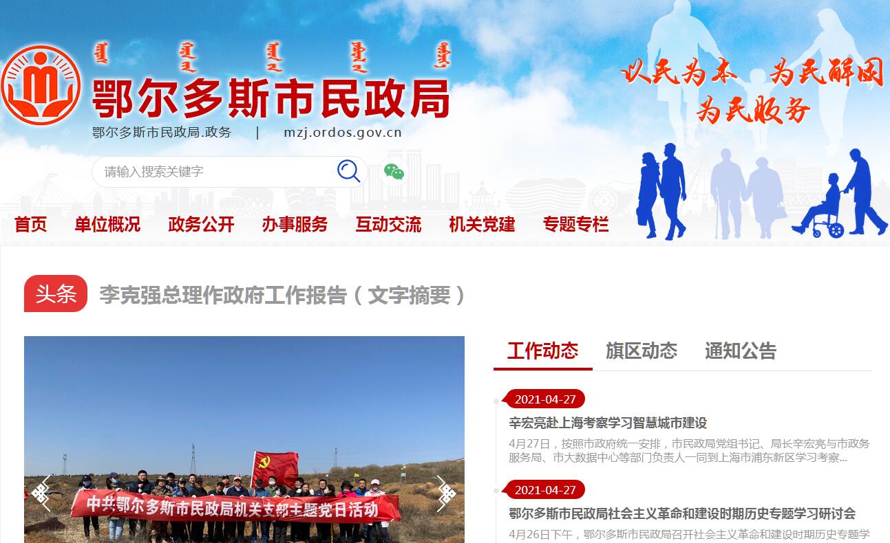 鄂爾多斯市民政局官方網(wǎng)站。