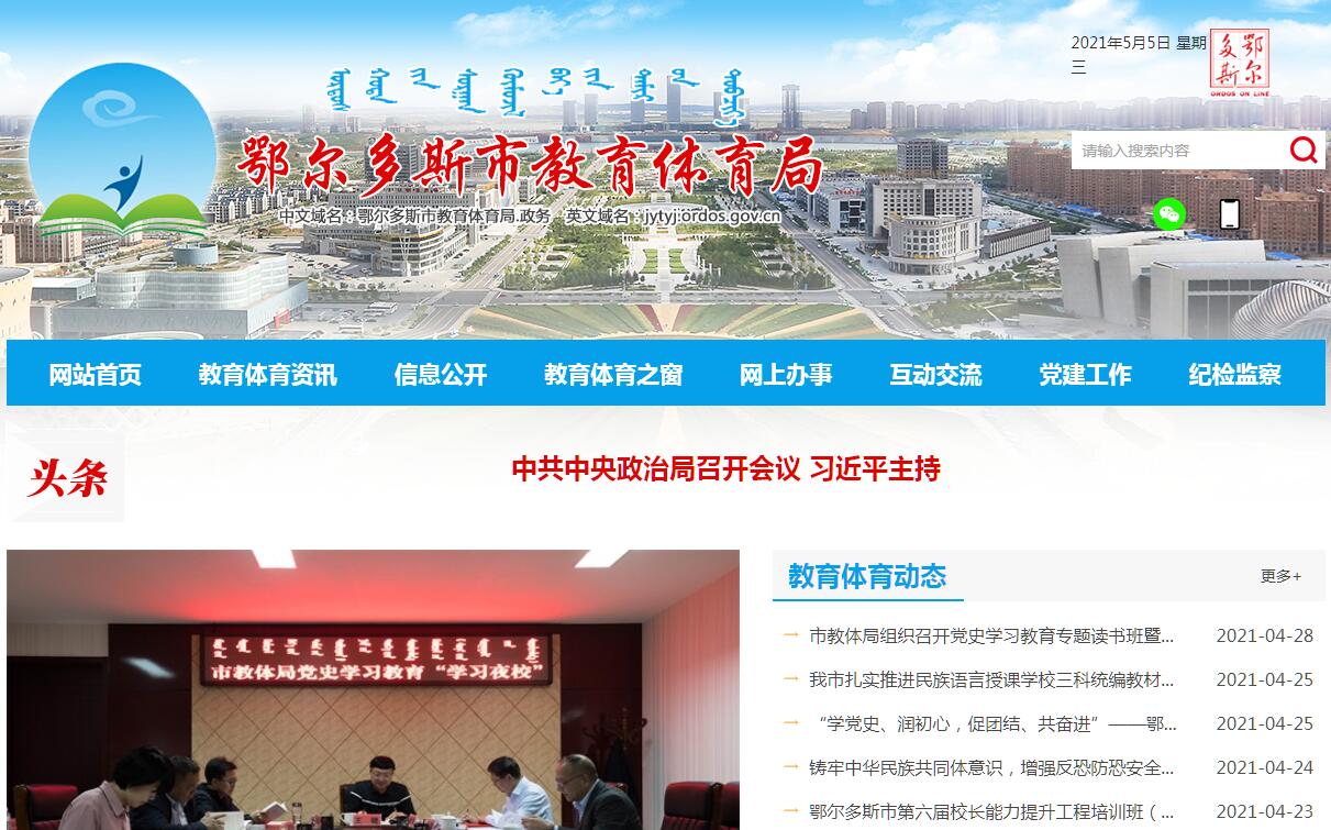 | 網(wǎng)站名稱: | 鄂爾多斯市教育體育局 | ||
