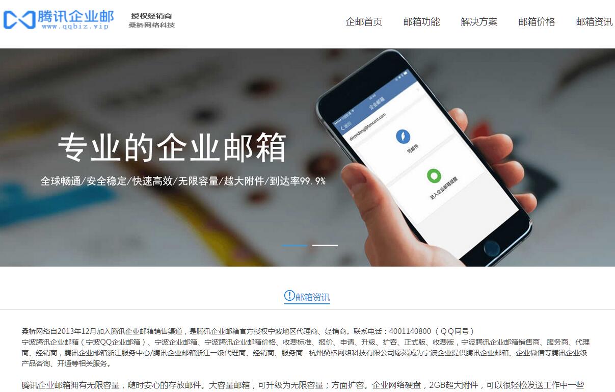 | 網(wǎng)站簡(jiǎn)介: 桑橋網(wǎng)絡(luò)是騰訊企業(yè)郵箱官方授權(quán)寧波地區(qū)代理商、經(jīng)銷商。寧波騰訊企業(yè)郵箱(寧波QQ企業(yè)郵箱)、寧波企業(yè)郵箱、寧波騰訊企業(yè)郵箱價(jià)格、收費(fèi)標(biāo)準(zhǔn)、報(bào)價(jià)、申請(qǐng)、升級(jí)、擴(kuò)容、正式版、收費(fèi)版,寧波騰訊企業(yè)郵箱銷售商、服務(wù)商、代理商、經(jīng)銷商,騰訊企業(yè)郵箱浙江服務(wù)中心/騰訊企業(yè)郵箱浙江一級(jí)代理商、經(jīng)銷商、服務(wù)商--杭州桑橋網(wǎng)絡(luò)科技有限公司愿竭誠(chéng)為寧波企業(yè)提供騰訊企業(yè)郵箱、企業(yè)微信等騰訊企業(yè)級(jí)產(chǎn)品咨詢、開(kāi)通等相關(guān)服務(wù)。 |