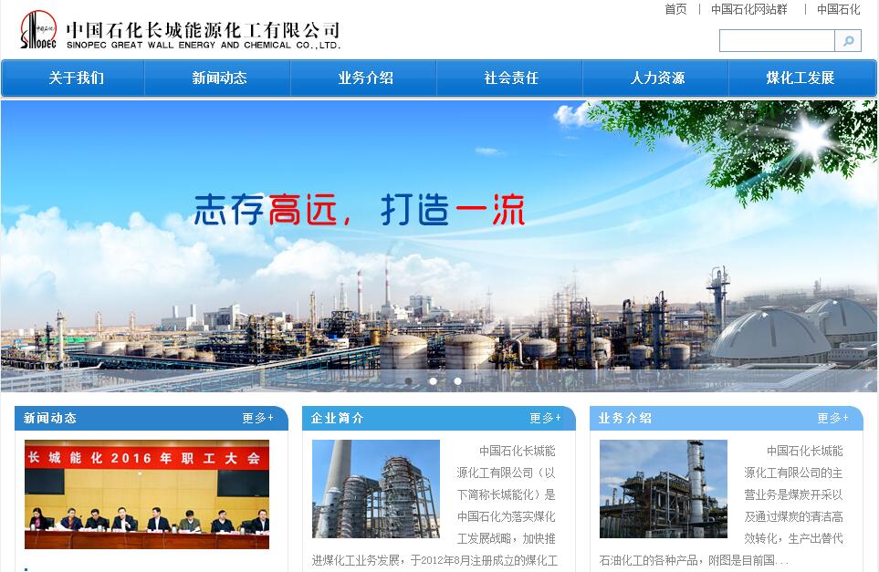 | 網(wǎng)站簡介: 中國石化長城能源化工有限公司(以下簡稱長城能化)是中國石化為落實煤化工發(fā)展戰(zhàn)略,加快推進煤化工業(yè)務發(fā)展,于2012年8月注冊成立的煤化工專業(yè)公司。長城能化是中國石化股份公司的全資子公司,業(yè)務歸口化工事業(yè)部管理與指導,定位為煤化工業(yè)務投資的平臺,負責煤化工項目投資和運營,組織協(xié)調(diào)煤化工項目建設(shè),對煤化工企業(yè)實施專業(yè)化管理。 |