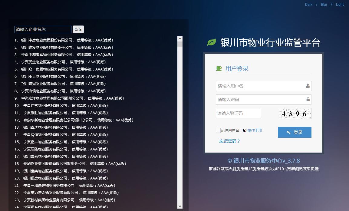 | 網(wǎng)站名稱: | 銀川市物業(yè)行業(yè)監(jiān)管平臺(tái) | ||