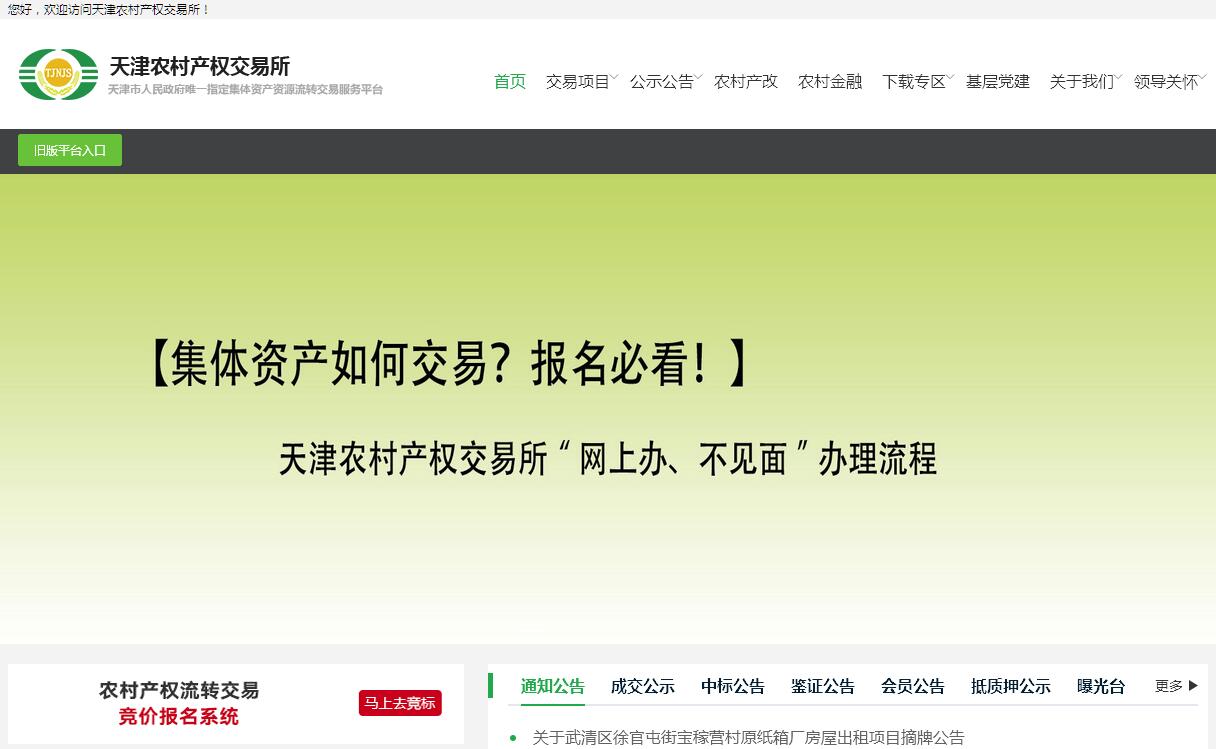 | 網(wǎng)站簡介: 天津農(nóng)村產(chǎn)權(quán)交易所官方網(wǎng)站. |