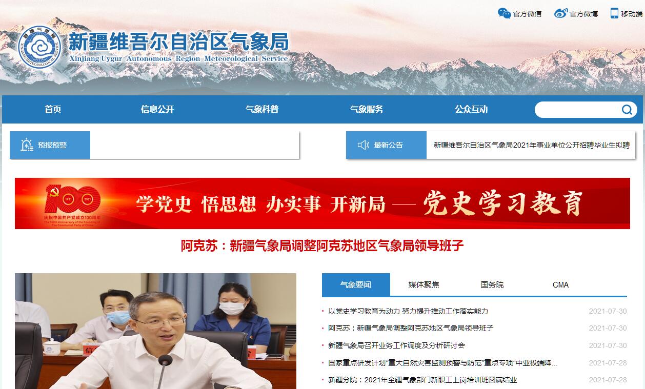 | 網(wǎng)站簡介: 新疆維吾爾自治區(qū)氣象局官方門戶網(wǎng)站。 |