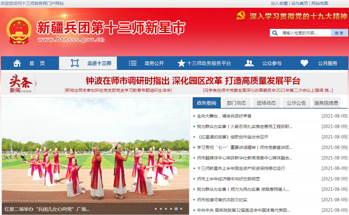 | 網(wǎng)站簡介: 新疆生產(chǎn)建設(shè)兵團第十三師新星市官方門戶網(wǎng)站。 |
