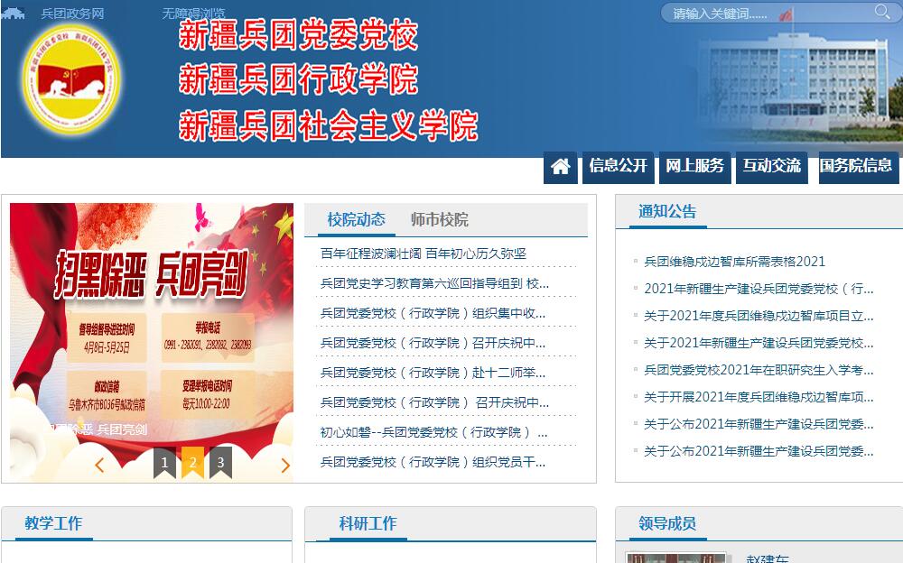 | 網(wǎng)站簡(jiǎn)介: 兵團(tuán)黨委黨校(兵團(tuán)行政學(xué)院)官方網(wǎng)站。 |