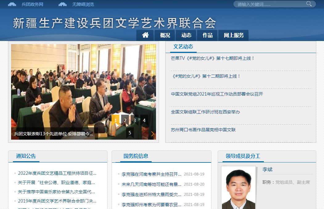 | 網(wǎng)站簡介: 新疆生產(chǎn)建設(shè)兵團(tuán)文學(xué)藝術(shù)界聯(lián)合會(huì)官方網(wǎng)站。 |