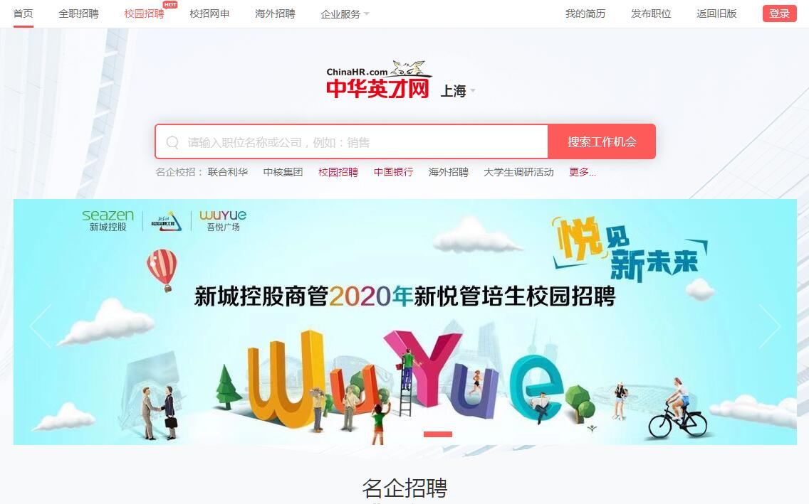 中華英才網(wǎng)成立于1997年,是國內(nèi)較早成立的專業(yè)招聘網(wǎng)站之一。2015年5月8日,58同城并購中華英才網(wǎng),在58同城和趕集網(wǎng)藍(lán)領(lǐng)招聘平臺基礎(chǔ)上,中華英才網(wǎng)專注于年輕精英白領(lǐng)招聘優(yōu)勢,打通并覆蓋招聘全產(chǎn)業(yè)鏈。中華英才網(wǎng)覆蓋全國上千萬的年輕精英白領(lǐng)求職者,針對用戶在不同行業(yè)領(lǐng)域、招聘規(guī)模、人才結(jié)構(gòu)等方面的多方面招聘需求,提供了完整的產(chǎn)品服務(wù)鏈條。中華英才網(wǎng)作為年輕精英的招聘平臺,具備精準(zhǔn)匹配的定位,通過專注于科學(xué)構(gòu)建真實(shí)精英人才簡歷庫,伴隨人才成長各階段智能化人崗匹配,為雇主提供高效的本地化人力服務(wù)。