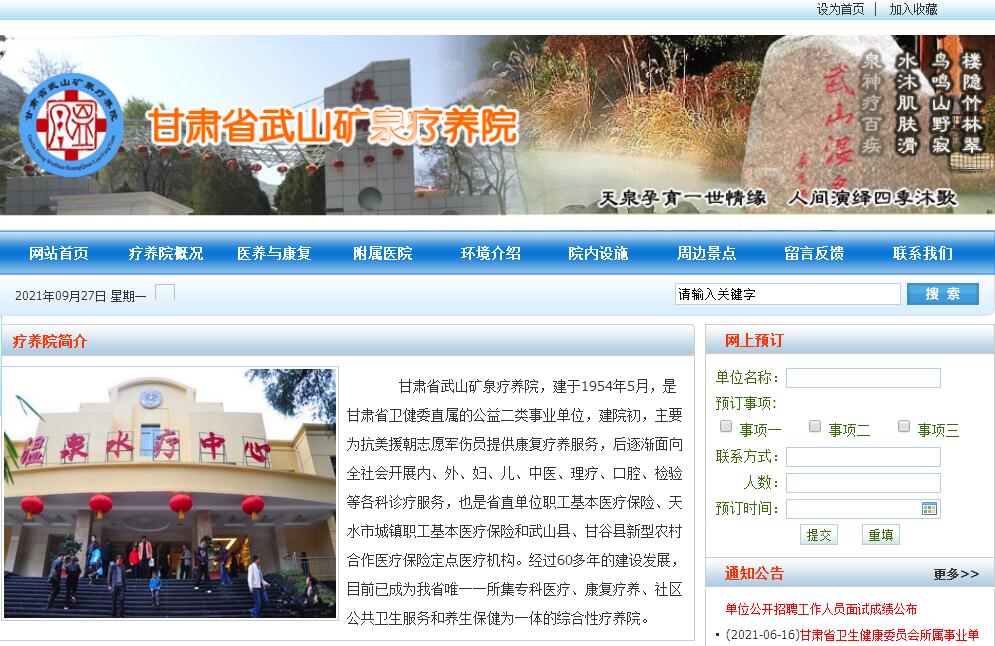 | 網(wǎng)站名稱: | 甘肅省武山礦泉療養(yǎng)院 | ||