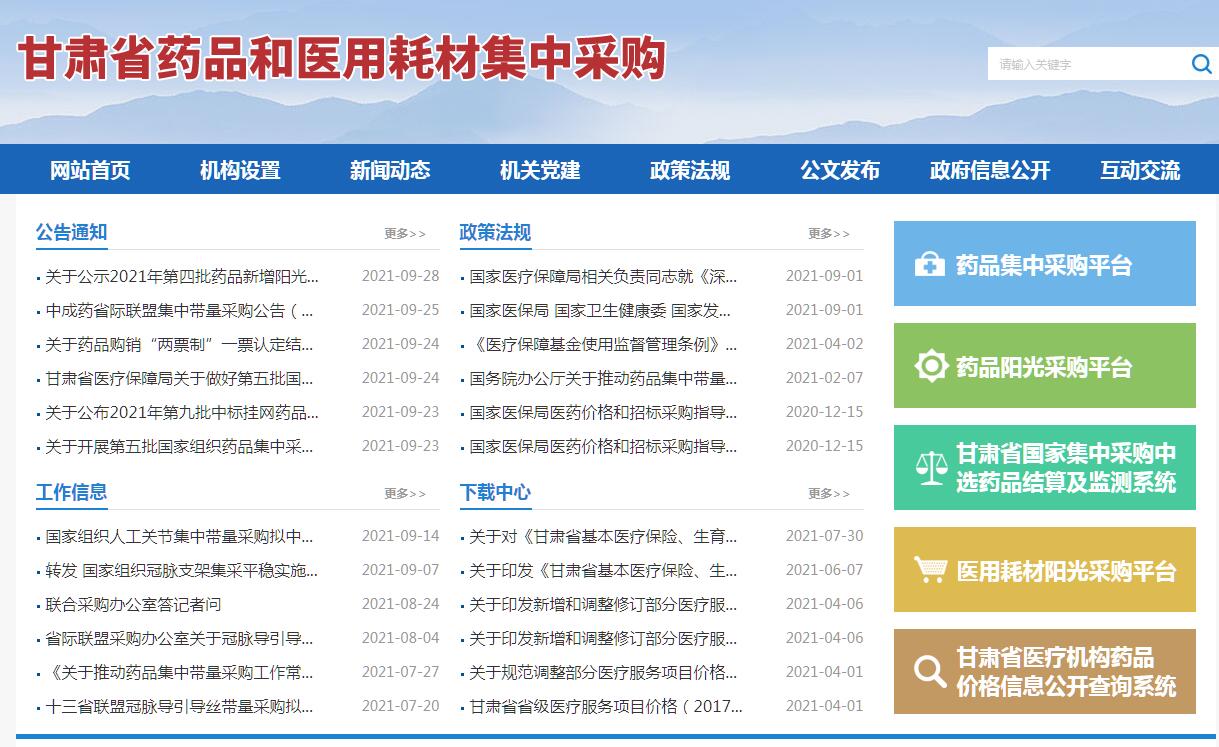 | 網(wǎng)站名稱: | 甘肅省藥品和醫(yī)用耗材集中采購 | ||
