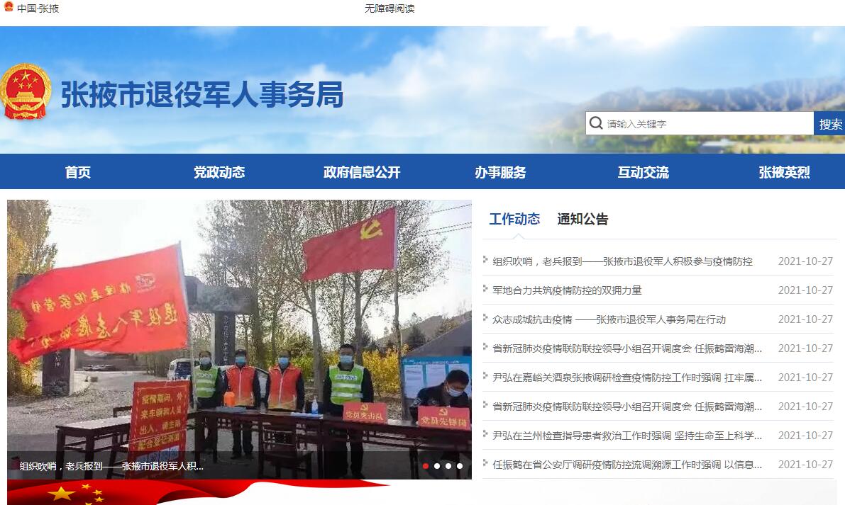 | 網(wǎng)站名稱: | 張掖市退役軍人事務局 | ||