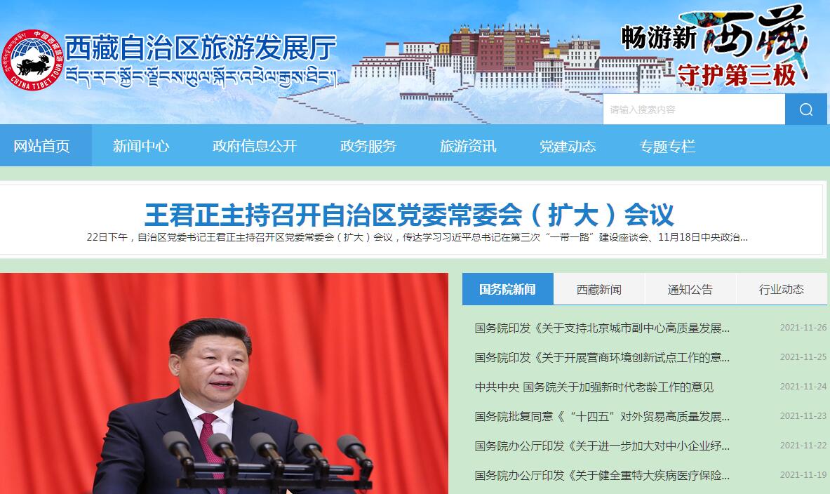 西藏自治區(qū)旅游發(fā)展廳官方門戶網站。