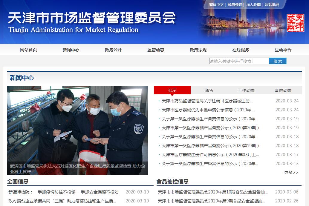 天津市市場(chǎng)監(jiān)督管理委員會(huì)主要職責(zé):(一)負(fù)責(zé)市場(chǎng)綜合監(jiān)督管理。貫徹執(zhí)行市場(chǎng)監(jiān)督管理方面法律、法規(guī)、規(guī)章和政策、標(biāo)準(zhǔn),組織起草地方性法規(guī)、政府規(guī)章草案,組織實(shí)施質(zhì)量強(qiáng)國(guó)戰(zhàn)略、 質(zhì)量立市戰(zhàn)略和食品安全戰(zhàn)略、標(biāo)準(zhǔn)化戰(zhàn)略,擬訂并組織實(shí)施有關(guān)市場(chǎng)監(jiān)管規(guī)劃、計(jì)劃,規(guī)范和維護(hù)市場(chǎng)秩序,營(yíng)造誠(chéng)實(shí)守信、公平競(jìng)爭(zhēng)的市場(chǎng)環(huán)境。(二)負(fù)責(zé)本市市場(chǎng)主體統(tǒng)一登記注冊(cè)。負(fù)責(zé)本市各類企業(yè)、農(nóng)民專業(yè)合作社和從事經(jīng)營(yíng)活動(dòng)的單位、個(gè)體工商戶,以及外國(guó)(地區(qū))企業(yè)常駐代表機(jī)構(gòu)等市場(chǎng)主體的登記注冊(cè)和監(jiān)督管理工作。建立市場(chǎng)主體信息公示和共享機(jī)制,依法公示和共享有關(guān)信息,加強(qiáng)信用監(jiān)管,推動(dòng)市場(chǎng)主體信用體系建設(shè)。(三)負(fù)責(zé)組織實(shí)施和指導(dǎo)本市市場(chǎng)監(jiān)管綜合執(zhí)法工作。指導(dǎo)區(qū)市場(chǎng)監(jiān)管綜合執(zhí)法隊(duì)伍整合和建設(shè),推動(dòng)實(shí)行統(tǒng)一的市場(chǎng)監(jiān)管。組織查處重大違法案件。規(guī)范市場(chǎng)監(jiān)管行政執(zhí)法行為。(四)負(fù)責(zé)本市反壟斷統(tǒng)一執(zhí)法。統(tǒng)籌推進(jìn)本市競(jìng)爭(zhēng)政策實(shí)施,組織實(shí)施公平競(jìng)爭(zhēng)審查制度。依法依授權(quán)對(duì)經(jīng)營(yíng)者集中行為進(jìn)行反壟斷審查,負(fù)責(zé)壟斷協(xié)議、濫用市場(chǎng)支配地位和濫用行政權(quán)力排除、限制競(jìng)爭(zhēng)等反壟斷執(zhí)法工作。指導(dǎo)本市企業(yè)在國(guó)外的反壟斷應(yīng)訴工作。(五)負(fù)責(zé)監(jiān)督管理市場(chǎng)秩序。依法監(jiān)督管理市場(chǎng)交易、網(wǎng)絡(luò)商品交易及有關(guān)服務(wù)的行為。依法實(shí)施合同、拍賣行為監(jiān)督管理,管理動(dòng)產(chǎn)抵押物登記工作。組織指導(dǎo)查處價(jià)格收費(fèi)違法違規(guī)、不正當(dāng)競(jìng)爭(zhēng)、違法直銷、傳銷、侵犯商標(biāo)專利知識(shí)產(chǎn)權(quán)和制售假冒偽劣行為。指導(dǎo)廣告業(yè)發(fā)展,監(jiān)督管理廣告活動(dòng)。組織查處無(wú)照生產(chǎn)經(jīng)營(yíng)和相關(guān)無(wú)證生產(chǎn)經(jīng)營(yíng)行為。指導(dǎo)市消費(fèi)者協(xié)會(huì)開展消費(fèi)維權(quán)工作。承擔(dān)市打擊侵犯知識(shí)產(chǎn)權(quán)和制售假冒偽劣商品工作領(lǐng)導(dǎo)小組日常工作。(六)負(fù)責(zé)宏觀質(zhì)量管理。擬訂并組織實(shí)施本市質(zhì)量發(fā)展的制度措施。統(tǒng)籌本市質(zhì)量基礎(chǔ)設(shè)施建設(shè)與應(yīng)用,會(huì)同有關(guān)部門組織實(shí)施重大工程設(shè)備質(zhì)量監(jiān)理制度,組織重大質(zhì)量事故調(diào)查,組織實(shí)施缺陷產(chǎn)品召回制度,監(jiān)督管理產(chǎn)品防偽工作。(七)負(fù)責(zé)產(chǎn)品質(zhì)量安全監(jiān)督管理。管理產(chǎn)品質(zhì)量安全風(fēng)險(xiǎn)監(jiān)控、監(jiān)督抽檢工作。建立并組織實(shí)施質(zhì)量分級(jí)制度、質(zhì)量安全追溯制度。負(fù)責(zé)工業(yè)產(chǎn)品生產(chǎn)許可管理,并實(shí)施監(jiān)督。負(fù)責(zé)纖維質(zhì)量監(jiān)督工作。(八) 負(fù)責(zé)特種設(shè)備安全監(jiān)督管理。綜合管理特種設(shè)備安全監(jiān)察、監(jiān)督工作,監(jiān)督檢查高耗能特種設(shè)備節(jié)能標(biāo)準(zhǔn)和鍋爐環(huán)境保護(hù)標(biāo)準(zhǔn)的執(zhí)行情況。(九)負(fù)責(zé)食品安全監(jiān)督管理綜合協(xié)調(diào)。組織制定本市食品安全重大政策并組織實(shí)施。負(fù)責(zé)食品安全應(yīng)急體系建設(shè),組織和指導(dǎo)重大食品安全事件應(yīng)急處置和調(diào)查處理工作。建立健全食品安全重要信息直報(bào)制度。承擔(dān)天津市食品安全委員會(huì)日常工作。(十)負(fù)責(zé)食品安全監(jiān)督管理。建立本市覆蓋食品生產(chǎn)、流通、消費(fèi)全過(guò)程的監(jiān)督檢查制度和隱患排查治理機(jī)制并組織實(shí)施,防范區(qū)域性、系統(tǒng)性食品安全風(fēng)險(xiǎn)。推動(dòng)建立食品生產(chǎn)經(jīng)營(yíng)者落實(shí)主體責(zé)任的機(jī)制,健全食品安全追溯體系。組織開展食品安全監(jiān)督抽檢、風(fēng)險(xiǎn)監(jiān)測(cè)、檢查處置和風(fēng)險(xiǎn)預(yù)警、風(fēng)險(xiǎn)交流工作,定期發(fā)布相關(guān)信息。組織實(shí)施特殊食品注冊(cè)、備案和監(jiān)督管理。(十一)負(fù)責(zé)統(tǒng)一管理計(jì)量工作。推行法定計(jì)量單位和國(guó)家計(jì)量制度, 組織制定地方計(jì)量檢定規(guī)程和計(jì)量技術(shù)規(guī)范, 依法管理計(jì)量器具及量值傳遞和比對(duì)工作,規(guī)范、監(jiān)督商品量和市場(chǎng)計(jì)量行為。(十二)負(fù)責(zé)統(tǒng)一管理標(biāo)準(zhǔn)化工作。建立標(biāo)準(zhǔn)實(shí)施信息反饋和評(píng)估機(jī)制并組織實(shí)施。依法承擔(dān)地