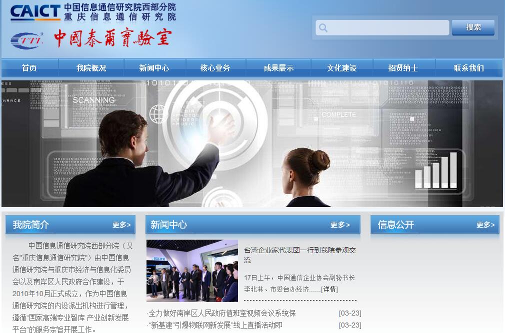 中國信息通信研究院西部分院(又名"重慶信息通信研究院")由中國信息通信研究院與重慶市經(jīng)濟(jì)與信息化委員會(huì)以及南岸區(qū)人民政府合作建設(shè),于2010年10月正式成立,作為中國信息通信研究院的內(nèi)設(shè)派出機(jī)構(gòu)進(jìn)行管理,遵循“國家高端專業(yè)智庫 產(chǎn)業(yè)創(chuàng)新發(fā)展平臺(tái)”的服務(wù)宗旨開展工作,是我國中西部地區(qū)最重要的公共技術(shù)服務(wù)平臺(tái)之一。中國信通院西部分院致力于提升我國中西部地區(qū)工業(yè)與信息化進(jìn)程,優(yōu)化產(chǎn)業(yè)發(fā)展環(huán)境,強(qiáng)化產(chǎn)業(yè)區(qū)域優(yōu)勢,培養(yǎng)和扶持中西部地區(qū)電子信息相關(guān)企業(yè)拓展國內(nèi)外市場能力,不斷完善自身科研與檢測能力,努力打造中西部地區(qū)電子信息產(chǎn)業(yè)、物聯(lián)網(wǎng)產(chǎn)業(yè)科研檢測基地,鼎力支撐重慶市成為中國新一代移動(dòng)通信產(chǎn)業(yè)基地和中國物聯(lián)網(wǎng)產(chǎn)業(yè)核心基地。重慶電子信息中小企業(yè)公共服務(wù)有限公司(以下簡稱:“平臺(tái)公司”)成立于2012年9月,由重慶市經(jīng)濟(jì)和信息化委員會(huì)、南岸區(qū)人民政府、重慶市經(jīng)濟(jì)技術(shù)開發(fā)區(qū)管委會(huì)和中國信息通信研究院共同組建。平臺(tái)公司由中國信息通信研究院西部分院具體執(zhí)行日常管理工作,以立足重慶、服務(wù)全國的電子信息企業(yè)為宗旨,在電子信息、互聯(lián)網(wǎng)+領(lǐng)域重點(diǎn)布局,傾力培養(yǎng)技術(shù)團(tuán)隊(duì)、重視服務(wù)能力建設(shè),為重慶市企業(yè)提供研發(fā)設(shè)計(jì)、技術(shù)咨詢、認(rèn)證代理、解決方案、培訓(xùn)等服務(wù)?,F(xiàn)主營產(chǎn)品包括家居智能化系統(tǒng)、社區(qū)智慧化平臺(tái)、資產(chǎn)管理信息化系統(tǒng)等,現(xiàn)已有穩(wěn)定合作單位10余家,打造信息化案例30余個(gè)。同時(shí),公司通過支撐南岸區(qū)產(chǎn)業(yè)協(xié)同創(chuàng)新聯(lián)盟的相關(guān)工作,為南岸區(qū)企業(yè)和政府、企事業(yè)單位的技術(shù)合作搭建重要溝通平臺(tái)和橋梁,支撐產(chǎn)學(xué)研項(xiàng)目對接、項(xiàng)目合作,以產(chǎn)業(yè)發(fā)展為導(dǎo)向,開展政府、行業(yè)培訓(xùn),為南岸區(qū)孵化創(chuàng)新創(chuàng)業(yè)企業(yè)、培養(yǎng)行業(yè)龍頭企業(yè)提供了可靠支撐,對重慶市電子信息產(chǎn)業(yè)發(fā)展起到了重要的推進(jìn)作用。