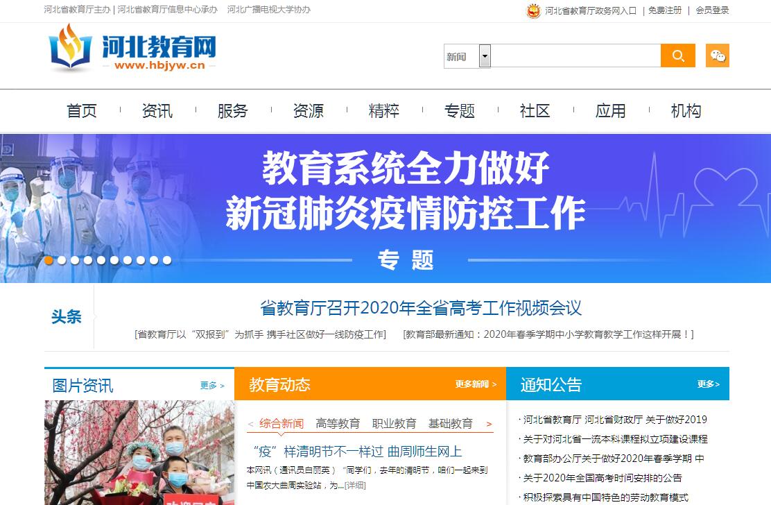 “河北教育網(wǎng)”(www.hbjyw.cn)是河北省教育廳主辦、河北省教育發(fā)展研究與信息管理中心承辦、河北廣播電視大學(xué)協(xié)辦的全省教育門戶網(wǎng)站,是河北省教育廳面向公眾提供教育服務(wù)、加強(qiáng)對(duì)外宣傳的重要平臺(tái)和載體。“河北教育網(wǎng)”堅(jiān)持以服務(wù)系統(tǒng)、服務(wù)師生和服務(wù)社會(huì)為中心,突出“內(nèi)容提供、互動(dòng)交流和教育應(yīng)用”三大功能,著力打造全省最權(quán)威、最齊全的“一站式”教育信息服務(wù)平臺(tái)?!昂颖苯逃W(wǎng)”圍繞“內(nèi)容提供、互動(dòng)交流和教育應(yīng)用”三大功能定位,開設(shè)“資訊”、“服務(wù)”、“資源”、“社區(qū)”、“專題”、“應(yīng)用”六大版塊。開發(fā)了“通訊員管理系統(tǒng)”、“回執(zhí)系統(tǒng)”、“陽光高考平臺(tái)”、“外籍教師及留學(xué)生管理系統(tǒng)”等應(yīng)用,“全國教育基礎(chǔ)信息數(shù)據(jù)庫管理與服務(wù)系統(tǒng)”五大平臺(tái)20多個(gè)子系統(tǒng)也將陸續(xù)在“河北教育網(wǎng)”進(jìn)行部署和使用。