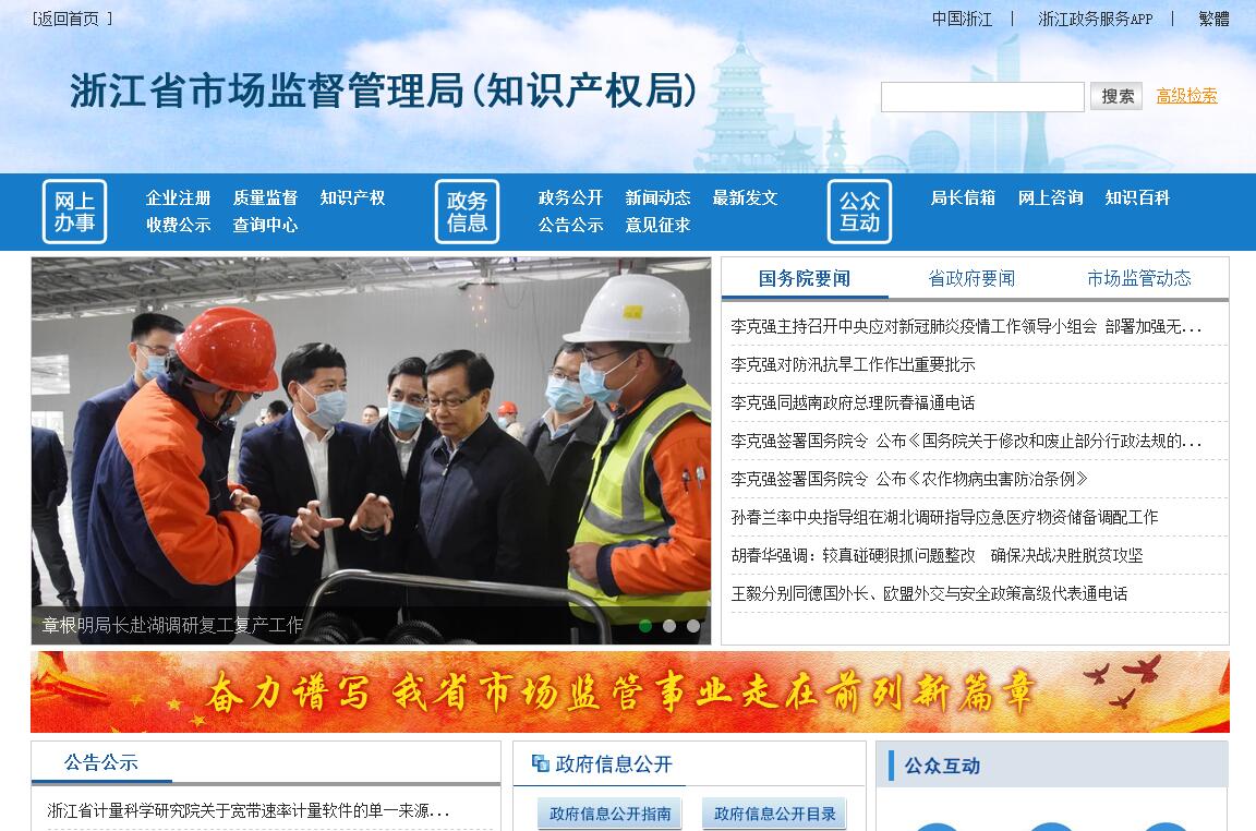 浙江省市場監(jiān)督管理局是省政府直屬機構,為正廳級,掛省知識產(chǎn)權局牌子。貫徹落實黨中央和省委關于市場監(jiān)督管理工作的方針政策和決策部署,在履行職責過程中堅持和加強黨對市場監(jiān)督管理工作的集中統(tǒng)一領導。其主要職責是:(一)負責市場綜合監(jiān)督管理。組織實施國家有關市場監(jiān)督管理法律法規(guī),起草市場監(jiān)督管理有關地方性法規(guī)、規(guī)章草案,制定有關政策、標準。組織實施質量強省戰(zhàn)略、食品安全戰(zhàn)略、標準化戰(zhàn)略和知識產(chǎn)權戰(zhàn)略,擬訂并組織實施有關規(guī)劃,規(guī)范和維護市場秩序,營造誠實守信、公平競爭的市場環(huán)境。(二)負責市場主體統(tǒng)一登記注冊。指導各類企業(yè)、農(nóng)民專業(yè)合作社和從事經(jīng)營活動的單位、個體工商戶以及外國(地區(qū))企業(yè)常駐代表機構等市場主體的登記注冊工作,扶持個體、民營經(jīng)濟發(fā)展。(三)負責市場主體信息公示和共享機制建設。依法公示和共享有關信息,加強信用監(jiān)管,推動市場主體信用體系建設。(四)負責組織和指導市場監(jiān)管綜合行政執(zhí)法工作。貫徹落實中央和省關于市場監(jiān)管綜合行政執(zhí)法改革相關文件精神,指導推進全省市場監(jiān)管綜合行政執(zhí)法改革工作。指導市縣市場監(jiān)管綜合行政執(zhí)法隊伍整合和建設,會同有關部門指導落實將商務執(zhí)法、鹽業(yè)執(zhí)法整合納入市場監(jiān)管執(zhí)法,規(guī)范市場監(jiān)管行政執(zhí)法行為。組織查處重大違法案件。(五)負責反壟斷相關工作。統(tǒng)籌推進競爭政策實施,指導實施公平競爭審查制度。根據(jù)授權,承擔相關反壟斷執(zhí)法工作。指導浙江企業(yè)在國外的反壟斷應訴工作。(六)負責監(jiān)督管理市場秩序。依法監(jiān)督管理市場交易、網(wǎng)絡商品交易及有關服務行為。組織查處價格收費違法違規(guī)、不正當競爭、違法直銷、傳銷、侵犯商標專利知識產(chǎn)權和制售假冒偽劣行為。參與制定商品交易市場發(fā)展規(guī)劃并與相關部門建立溝通協(xié)作機制,規(guī)范商品交易市場、農(nóng)貿(mào)市場秩序,指導商品交易市場提升發(fā)展和農(nóng)貿(mào)市場改造提升工作。指導廣告業(yè)發(fā)展,監(jiān)督管理廣告活動。指導查處無照生產(chǎn)經(jīng)營和相關無證生產(chǎn)經(jīng)營行為。指導消費維權工作和消費環(huán)境建設。(七)負責宏觀質量管理。擬訂并實施質量發(fā)展的制度措施。協(xié)調推進區(qū)域品牌建設,統(tǒng)籌質量基礎設施建設與應用,會同有關部門組織實施重大工程設備質量監(jiān)理制度,組織重大質量事故調查,統(tǒng)一實施缺陷產(chǎn)品召回制度,監(jiān)督管理產(chǎn)品防偽工作。(八)負責產(chǎn)品質量安全監(jiān)督管理。管理產(chǎn)品質量安全風險監(jiān)控、監(jiān)督抽查工作。組織實施質量分級制度、質量安全追溯制度。組織實施工業(yè)產(chǎn)品生產(chǎn)許可管理。負責纖維質量監(jiān)督工作。(九)負責特種設備安全監(jiān)督管理。綜合管理特種設備安全監(jiān)察、監(jiān)督工作,監(jiān)督檢查高耗能特種設備節(jié)能標準和鍋爐環(huán)境保護標準的執(zhí)行情況。(十)負責食品安全監(jiān)督管理綜合協(xié)調。組織制定食品安全重大政策并組織實施。負責食品安全應急體系建設,組織指導重大食品安全事件應急處置和調查處理工作。建立落實食品安全重要信息直報制度。承擔省食品安全委員會日常工作。(十一)負責食品安全監(jiān)督管理。建立實施覆蓋食品生產(chǎn)、流通、消費全過程的監(jiān)督檢查制度和隱患排查治理機制,防范區(qū)域性、系統(tǒng)性食品安全風險。推行食品生產(chǎn)經(jīng)營者落實主體責任機制,健全食品安全追溯體系。組織開展食品安全監(jiān)督抽檢、風險監(jiān)測、核查處置和風險預警、風險交流工作。組織實施特殊食品注冊相關工作、備案和監(jiān)督管理。(十二)負責統(tǒng)一管理計量工作。推行法定計量單位和國家計量制度,管理計量器具及量值傳遞和比對工作。規(guī)范、監(jiān)督商品量和市場計量行為。(十三)負責統(tǒng)一管理標準化工作。組織協(xié)調并指導推動各部門、各行業(yè)的標準化工作。依法組織制定地方標準。依法對標準的實施進行監(jiān)督。(十四)負責統(tǒng)一管理檢驗檢測工作。推進檢驗檢測機構改革,規(guī)范檢驗檢測市場,完善檢驗檢測體系,指導協(xié)調檢驗檢測行業(yè)發(fā)展。(十五)負責統(tǒng)一管理、監(jiān)督和綜合協(xié)調認證認可工作。組織實施統(tǒng)一的認證認可和合格評定監(jiān)督管理制度。(十六)負責知識產(chǎn)權監(jiān)督管理。擬訂并組織實施知識產(chǎn)權創(chuàng)造、保護和運用的政策、規(guī)劃,建設完善知識產(chǎn)權保護體系、公共服務體系,指導商標專利執(zhí)法,保護知識產(chǎn)權,促進知識產(chǎn)權創(chuàng)造和運用。(十七)負責市場監(jiān)督管理科技和信息化建設、新聞宣傳、交流與合作。按照規(guī)定承擔應對技術性貿(mào)易措施有關工作。(十八)管理省藥品監(jiān)督管理局。(十九)完成省委、省政府交辦的其他任務。