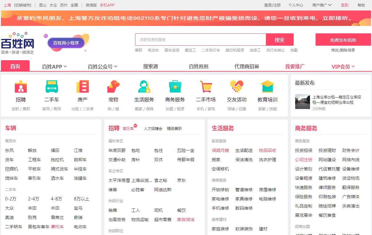 | 網(wǎng)站簡介: 百姓網(wǎng) (Baixing.com)成立于2005年3月1日,是國內(nèi)領(lǐng)先的分類信息生態(tài)服務(wù)商,也是中國互聯(lián)網(wǎng)輕資產(chǎn)模式的典范。百姓網(wǎng)致力于打造以分類信息業(yè)務(wù)為平臺、多條垂直業(yè)務(wù)線布局的生態(tài)圈,為用戶提供涵蓋生活服務(wù)、招聘求職、房屋租售、二手車買賣、二手交易、教育培訓(xùn)、同城交友等本地生活解決方案。截至2016年9月,百姓網(wǎng)月活躍用戶數(shù)過億,月新增信息量超過千萬條,覆蓋全國367個城市。其中,來自移動的流量已超過全站流量的90%。2016年3月14日,百姓網(wǎng)在新三板掛牌。2017年5月,百姓網(wǎng)成功入選新三板創(chuàng)新層。 |