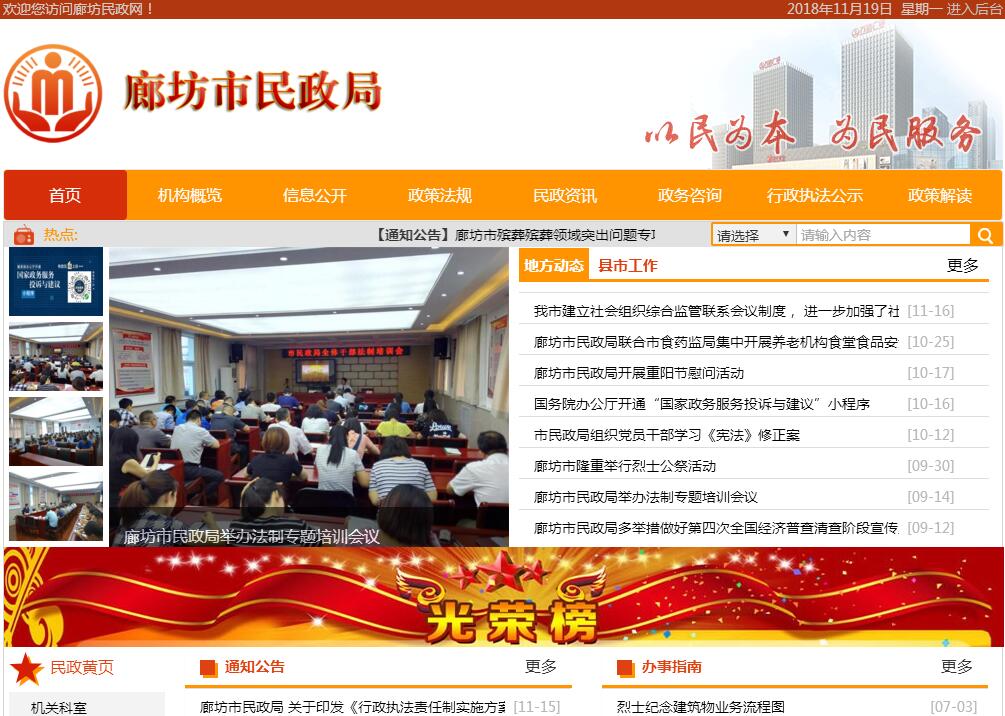 廊坊市民政局主要職責(zé):(一)貫徹執(zhí)行民政工作的法律法規(guī)及方針政策;擬訂全市民政事業(yè)發(fā)展規(guī)劃和相關(guān)政策;負(fù)責(zé)全市民政行政執(zhí)法監(jiān)督檢查、行政復(fù)議工作。(二)承擔(dān)依法對社會團(tuán)體、民辦非企業(yè)單位進(jìn)行管理和執(zhí)法監(jiān)察的責(zé)任;指導(dǎo)和監(jiān)督縣(市、區(qū))對社會團(tuán)體、民辦非企業(yè)單位的管理工作。(三)擬訂全市撫恤優(yōu)待和烈士褒揚工作相關(guān)政策;組織、指導(dǎo)全市擁軍優(yōu)屬活動;負(fù)責(zé)撫恤優(yōu)待和烈士褒揚工作;承擔(dān)廊坊市擁軍優(yōu)屬擁政愛民工作領(lǐng)導(dǎo)小組的日常工作。(四)擬訂全市退役士兵、復(fù)員干部及傷病殘退役士兵接收安置、扶持就業(yè)政策;負(fù)責(zé)駐廊中央、省垂直管理單位、市直單位城鎮(zhèn)退役士兵接收安置工作;負(fù)責(zé)各縣(市、區(qū))轉(zhuǎn)業(yè)士官的集中接收工作。(五)負(fù)責(zé)軍隊移交本市各級地方政府管理的軍隊離休干部、退休干部、退休士官和軍隊無軍籍退休退職職工接收安置工作;指導(dǎo)全市軍隊離退休干部服務(wù)管理工作。(六)擬訂全市救災(zāi)工作政策;組織、協(xié)調(diào)全市救災(zāi)工作;組織全市自然災(zāi)害救助應(yīng)急體系建設(shè);負(fù)責(zé)組織核查并統(tǒng)一發(fā)布災(zāi)情;管理、分配中央和省、市級救災(zāi)款物并監(jiān)督使用;組織、指導(dǎo)救災(zāi)捐贈工作,做好救災(zāi)物資的倉儲管理;負(fù)責(zé)國內(nèi)外對本市救災(zāi)捐贈款物的接收管理和分配使用。(七)牽頭擬訂社會救助規(guī)劃、政策和標(biāo)準(zhǔn),承擔(dān)城鄉(xiāng)社會救助體系建設(shè);負(fù)責(zé)城鄉(xiāng)居民最低生活保障、五保供養(yǎng)、醫(yī)療救助、臨時救助和生活無著人員救助工作;參與擬訂住房、教育、司法救助等相關(guān)辦法。(八)提出加強(qiáng)和改進(jìn)基層政權(quán)建設(shè)的建議,推進(jìn)基層民主政治建設(shè);指導(dǎo)村(居)民委員會開展民主選舉、民主決策、民主管理和民主監(jiān)督工作,推進(jìn)村(居)務(wù)公開;指導(dǎo)全市村改居和農(nóng)村社區(qū)建設(shè)工作。(九)擬訂全市行政區(qū)劃總體規(guī)劃和相關(guān)政策;負(fù)責(zé)縣(市、區(qū))、鄉(xiāng)鎮(zhèn)、縣(市)的街道辦事處的設(shè)立、命名、更名、變更及政府駐地遷移的調(diào)查、論證和申報工作;負(fù)責(zé)市轄區(qū)內(nèi)街道辦事處的設(shè)立、撤銷、調(diào)整、命名、更名、界線變更及駐地遷移的審批工作;負(fù)責(zé)重要自然、人文地理實體命名、更名的申報、審批工作;負(fù)責(zé)全市地名管理工作,組織實施地名公共服務(wù)工程;負(fù)責(zé)編輯和審定全市行政區(qū)劃和標(biāo)準(zhǔn)地名書圖資料;負(fù)責(zé)市級行政區(qū)域界線的日常管理工作;承辦有關(guān)仲裁工作。(十)擬訂全市社會福利事業(yè)發(fā)展規(guī)劃及各類福利機(jī)構(gòu)的管理辦法和服務(wù)標(biāo)準(zhǔn);負(fù)責(zé)全市福利彩票發(fā)行站點的服務(wù)管理,管理市級福利資金;負(fù)責(zé)全市社會福利企業(yè)認(rèn)定,擬訂福利企業(yè)扶持保護(hù)政策。(十一)擬訂促進(jìn)全市慈善事業(yè)發(fā)展政策;組織指導(dǎo)社會捐助工作;擬訂保障老年人、孤兒和殘疾人等特殊群體權(quán)益保護(hù)政策并督導(dǎo)落實;承擔(dān)全市康復(fù)器具行業(yè)管理工作。(十二)擬訂婚姻管理、殯葬管理和兒童收養(yǎng)政策;負(fù)責(zé)推進(jìn)婚俗和殯葬改革工作;指導(dǎo)婚姻、殯葬、收養(yǎng)、救助服務(wù)機(jī)構(gòu)建設(shè)和管理。(十三)會同有關(guān)部門擬訂社會工作發(fā)展規(guī)劃和政策措施;推進(jìn)全市社會工作人才隊伍建設(shè)和相關(guān)志愿者隊伍建設(shè)。(十四)承擔(dān)市扶貧工作領(lǐng)導(dǎo)小組交辦的日常工作。主管全市對內(nèi)扶貧和對口幫扶工作,協(xié)調(diào)有關(guān)部門與貧困村、貧困戶結(jié)對子,辦實事。積極爭取資金,采取有效措施,幫助貧困村、貧困戶盡快脫貧。負(fù)責(zé)對市直部門下村扶貧干部的管理和培訓(xùn)。(十五)承辦市政府交辦的其他事項。