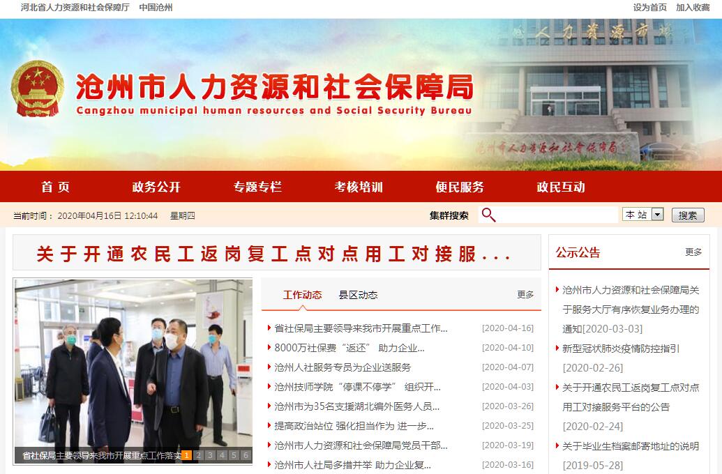 滄州市人力資源和社會保障局,為市政府工作部門。其主要職責是:1、貫徹落實國家、省有關人力資源和社會保障的政策、規(guī)定,監(jiān)督檢查落實情況;擬訂全市人力資源和社會保障事業(yè)發(fā)展規(guī)劃及措施,負責全市人力資源和社會保障的宣傳和輿情研究。2、擬訂人力資源市場發(fā)展規(guī)劃和人力資源流動辦法,建立統(tǒng)一規(guī)范的人力資源市場,促進人力資源合理流動、有效配置;擬訂機構改革人員定崗和分流措施并組織實施。3、負責促進就業(yè)工作,擬訂統(tǒng)籌城鄉(xiāng)的就業(yè)發(fā)展規(guī)劃和管理辦法,完善公共就業(yè)服務體系;擬訂就業(yè)援助制度,完善職業(yè)資格制度,統(tǒng)籌建立面向城鄉(xiāng)勞動者的職業(yè)培訓制度;牽頭擬訂高校畢業(yè)生就業(yè)措施,負責中專以上畢業(yè)生的就業(yè)指導、服務工作。會同有關部門擬訂高技能人才、農村實用人才培養(yǎng)和激勵辦法。4、統(tǒng)籌建立覆蓋城鄉(xiāng)的社會保障體系。執(zhí)行城鄉(xiāng)社會保險及其補充保險政策和標準,組織擬訂全市統(tǒng)一的社會保險關系轉續(xù)辦法和基金統(tǒng)籌辦法,統(tǒng)籌擬訂機關企事業(yè)單位社會保險辦法并逐步提高基金統(tǒng)籌層次。會同有關部門擬訂社會保險及其補充保險基金管理和監(jiān)督制度,編制全市社會保險基金預決算草案,參與制訂全市社會保險基金投資辦法。5、負責就業(yè)、失業(yè)、社會保險基金預測預警和信息引導,擬訂應對預案,實施預防、調節(jié)和控制,保持就業(yè)形勢穩(wěn)定和社會保險基金總體收支平衡。6、會同有關部門擬訂全市機關企事業(yè)單位人員工資收入分配實施辦法,建立全市機關企事業(yè)單位人員工資正常增長和支付保障機制。執(zhí)行機關企事業(yè)單位人員福利和離退休政策。7、會同有關部門擬訂全市人才工作總體目標,參與人才管理。會同有關部門指導全市事業(yè)單位人事制度改革,擬訂全市事業(yè)單位人員和機關工勤人員管理辦法。負責全市人事考試工作。制訂全市專業(yè)技術人員管理和繼續(xù)教育辦法,綜合管理全市職稱工作;負責高層次專業(yè)技術人才選拔和培養(yǎng),擬訂引進國(境)外專家、留學人員來滄(回國)工作或定居政策性措施。8、會同有關部門擬訂軍隊轉業(yè)干部安置辦法和安置計劃,負責軍隊轉業(yè)干部培訓工作。負責提出部分企業(yè)軍隊轉業(yè)干部解困和穩(wěn)定對策,負責自主擇業(yè)軍隊轉業(yè)干部的管理服務。9、負責行政機關公務員綜合管理,擬訂人員調配管理辦法和特殊人員安置辦法。10、會同有關部門落實農民工工作的綜合性政策和規(guī)定,協(xié)調解決重點難點問題,維護農民工合法權益。11、貫徹執(zhí)行勞動、人事爭議調解仲裁制度和勞動關系政策,完善勞動關系協(xié)調機制;執(zhí)行消除非法使用童工政策和女工、未成年工的特殊勞動保護政策,組織實施勞動監(jiān)察,協(xié)調勞動者維權工作,依法查處重大案件。12、承辦市政府交辦的其他事項。