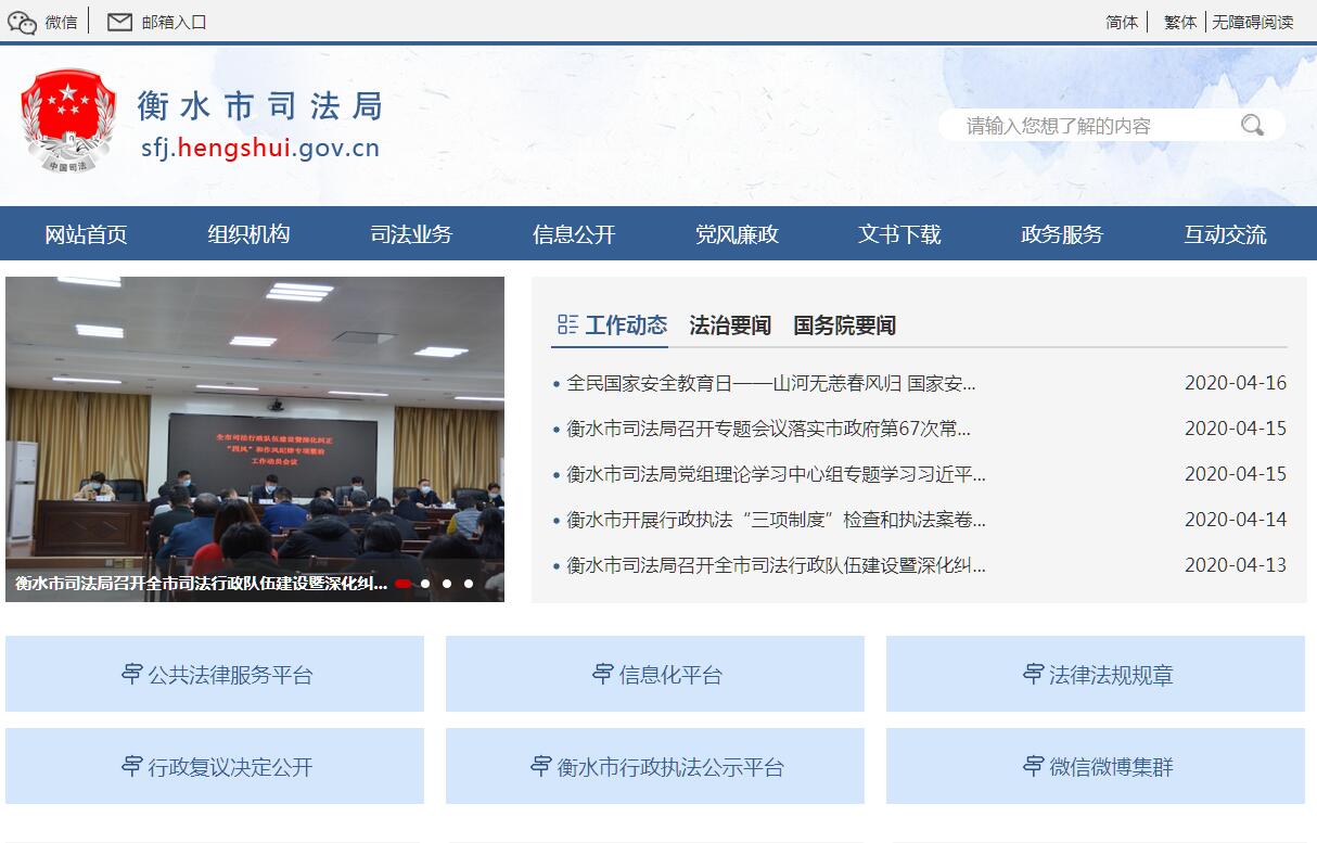 衡水市司法局主要職責(zé):1、貫徹執(zhí)行黨和國(guó)家及省司法行政工作的方針政策和法律法規(guī),研究擬定全市司法行政工作的措施,編制司法行政工作中長(zhǎng)期規(guī)劃、年度計(jì)劃并組織實(shí)施。2、制定全市法制宣傳教育和普法依法治理工作規(guī)劃并組織實(shí)施;制定全市法學(xué)成人教育規(guī)劃、年度計(jì)劃;指導(dǎo)全市對(duì)外法制宣傳工作。3、管理和指導(dǎo)全市的律師、法律顧問、法律援助工作;組織制定全市律師工作發(fā)展規(guī)劃以及律師管理的有關(guān)辦法;管理全市社會(huì)法律咨詢服務(wù)機(jī)構(gòu)及在我市設(shè)立的外地律師機(jī)構(gòu)。4、制定全市公證改革與發(fā)展的總體規(guī)劃并組織實(shí)施;管理和指導(dǎo)公證機(jī)構(gòu),負(fù)責(zé)公證業(yè)務(wù)質(zhì)量的監(jiān)督檢查,負(fù)責(zé)審查涉外、涉港澳臺(tái)公證事務(wù)。5、制定全市人民調(diào)解工作總體規(guī)劃并組織實(shí)施;指導(dǎo)各縣(市、區(qū))司法行政機(jī)關(guān)人民調(diào)解工作和基層法律服務(wù)工作,參與社會(huì)治安綜合治理。6、指導(dǎo)對(duì)刑滿釋放人員和解除勞動(dòng)教養(yǎng)人員的過渡性安置幫教工作;負(fù)責(zé)全市刑滿釋放人員和解除勞動(dòng)教養(yǎng)人員安置幫教工作的統(tǒng)計(jì)、分析、上報(bào)。7、管理和指導(dǎo)面向社會(huì)服務(wù)的司法鑒定工作;按照有關(guān)規(guī)定,負(fù)責(zé)司法鑒定機(jī)構(gòu)設(shè)立登記的初審和上報(bào)。8、負(fù)責(zé)仲裁機(jī)構(gòu)的審核、申報(bào)工作。9、管理全市司法行政系統(tǒng)的協(xié)會(huì)和學(xué)會(huì);管理和指導(dǎo)全市的法學(xué)理論研究;制定全市法學(xué)教育和司法行政干警培訓(xùn)規(guī)劃及企業(yè)法律顧問培訓(xùn)規(guī)劃。10、協(xié)調(diào)和指導(dǎo)全市“148”法律服務(wù)專線工作,受理群眾尋求法律服務(wù)事宜;解答法律咨詢,普及法律知識(shí);掌握重大民間糾紛信息,提供決策依據(jù)和信息服務(wù)。