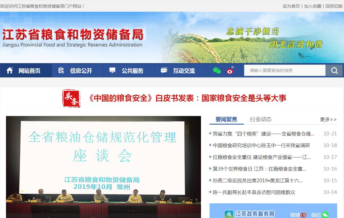根據(jù)《中共中央辦公廳關(guān)于印發(fā)〈江蘇省機(jī)構(gòu)改革方案〉的通知》(廳字〔2018〕98號(hào)),制定本規(guī)定。省糧食和物資儲(chǔ)備局是省政府直屬機(jī)構(gòu),為正廳級(jí)。省糧食和物資儲(chǔ)備局貫徹落實(shí)中央關(guān)于糧食和物資儲(chǔ)備工作的方針政策和省委的決策部署,在履行職責(zé)過程中堅(jiān)持和加強(qiáng)黨對(duì)糧食和物資儲(chǔ)備工作的集中統(tǒng)一領(lǐng)導(dǎo)。其主要職責(zé)是:(一)組織實(shí)施國(guó)家糧食流通和物資儲(chǔ)備的法律法規(guī)和規(guī)章。起草全省糧食流通和物資儲(chǔ)備管理的地方性法規(guī)、規(guī)章草案。研究提出糧食流通和物資儲(chǔ)備體制改革方案并組織實(shí)施。(二)根據(jù)國(guó)家儲(chǔ)備總體發(fā)展規(guī)劃和品種目錄,研究提出全省儲(chǔ)備發(fā)展規(guī)劃、儲(chǔ)備品種目錄的建議。組織實(shí)施全省戰(zhàn)略和應(yīng)急儲(chǔ)備物資的收儲(chǔ)、輪換和日常管理,落實(shí)有關(guān)動(dòng)用計(jì)劃和指令。(三)管理全省糧食、棉花和食糖儲(chǔ)備,負(fù)責(zé)省級(jí)儲(chǔ)備糧棉行政管理。監(jiān)測(cè)糧食和戰(zhàn)略物資供求變化并預(yù)測(cè)預(yù)警,承擔(dān)全省糧食流通宏觀調(diào)控的具體工作,承擔(dān)糧食安全省長(zhǎng)責(zé)任制考核日常工作。(四)根據(jù)國(guó)家儲(chǔ)備總體發(fā)展規(guī)劃和全省儲(chǔ)備發(fā)展規(guī)劃,統(tǒng)一負(fù)責(zé)儲(chǔ)備基礎(chǔ)設(shè)施建設(shè)和管理。擬訂全省儲(chǔ)備基礎(chǔ)設(shè)施、糧食流通設(shè)施建設(shè)規(guī)劃并組織實(shí)施,管理有關(guān)儲(chǔ)備基礎(chǔ)設(shè)施和糧食流通設(shè)施省級(jí)投資項(xiàng)目。(五)擬訂糧食和物資儲(chǔ)備倉(cāng)儲(chǔ)管理有關(guān)技術(shù)標(biāo)準(zhǔn)和規(guī)范并組織實(shí)施。負(fù)責(zé)糧食流通、加工行業(yè)安全生產(chǎn)工作的監(jiān)督管理,承擔(dān)物資儲(chǔ)備承儲(chǔ)單位安全生產(chǎn)的監(jiān)管責(zé)任。(六)負(fù)責(zé)糧食流通行業(yè)管理,制定行業(yè)發(fā)展規(guī)劃、政策,擬訂糧食流通和物資儲(chǔ)備有關(guān)標(biāo)準(zhǔn),制定有關(guān)技術(shù)規(guī)范并監(jiān)督執(zhí)行。負(fù)責(zé)糧食和物資儲(chǔ)備的對(duì)外合作與交流。(七)負(fù)責(zé)對(duì)管理的政府儲(chǔ)備、企業(yè)儲(chǔ)備以及儲(chǔ)備政策落實(shí)情況進(jìn)行監(jiān)督檢查。負(fù)責(zé)糧食流通監(jiān)督檢查,負(fù)責(zé)糧食收購(gòu)、儲(chǔ)存、運(yùn)輸環(huán)節(jié)糧食質(zhì)量安全和原糧衛(wèi)生的監(jiān)督管理,組織實(shí)施全省糧食庫(kù)存檢查工作。(八)完成省委、省政府交辦的其他任務(wù)。