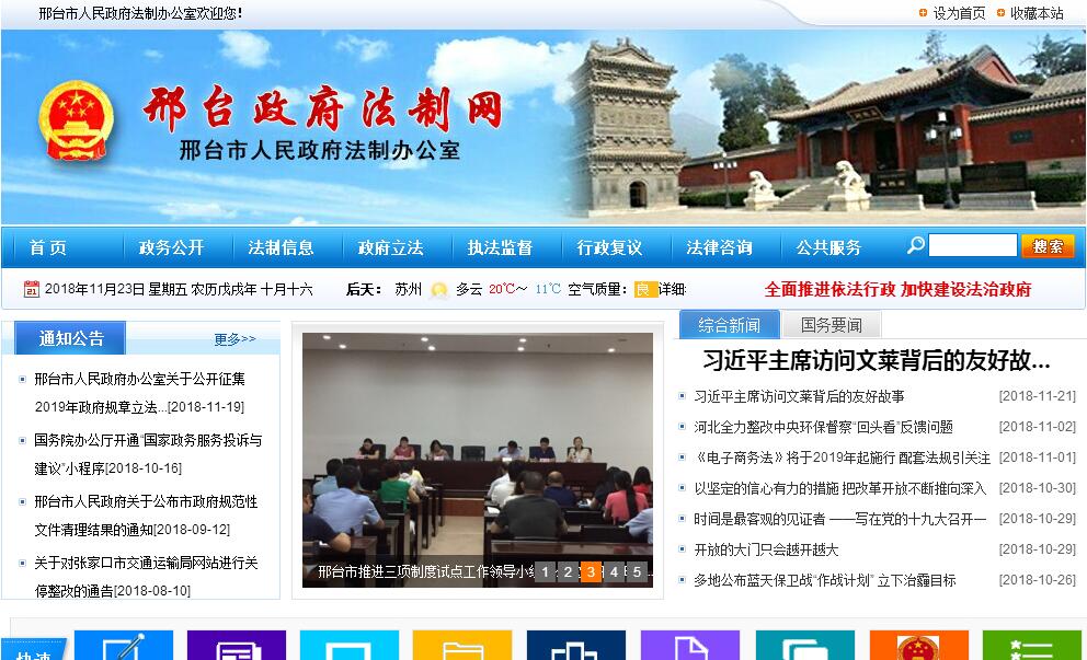 根據(jù)《邢臺市人民政府關(guān)于市政府機構(gòu)設(shè)置的通知》(邢政〔2009〕19號),邢臺市人民政府法制辦公室設(shè)在市政府辦公室,對外掛牌,為市政府工作部門。其主要職能:(一)調(diào)查研究依法行政和政府法制建設(shè)中出現(xiàn)的新情況、新問題,提出推進依法行政的具體措施和工作建議,在市政府全面推進依法行政中,發(fā)揮統(tǒng)籌規(guī)劃、綜合協(xié)調(diào)、督促指導(dǎo)、政策研究和情況交流作用。協(xié)助市長辦理法制工作事項。(二)負責(zé)審核以市政府名義簽署的各類協(xié)議、合作類會議(會談)紀要(備忘錄)、責(zé)任書(狀)等其他涉法具體行政行為。(三)承擔(dān)統(tǒng)籌規(guī)劃擬定市政府年度規(guī)范性文件制定工作計劃,并組織實施和督促指導(dǎo)。(四)負責(zé)起草或者組織起草重要規(guī)范性文件草案;審查修改各部門報送市政府的規(guī)范性文件草案,提交市政府審議。承辦市政府規(guī)范性文件的解釋工作。(五)負責(zé)從法律角度對市政府政策措施審核,負責(zé)市政府部門規(guī)范性文件的前置審查,負責(zé)對各縣(市、區(qū))規(guī)范性文件的備案審查,根據(jù)不同情況提出處理意見。(六)研究行政訴訟、行政復(fù)議、行政賠償、行政處罰、行政許可、行政收費等法律、法規(guī)、規(guī)章實施中帶有普遍性的問題,向市政府提出完善制度和解決問題的意見,擬訂有關(guān)配套文件和答復(fù)意見。(七)負責(zé)行政執(zhí)法部門的資格認定和職權(quán)界定工作,負責(zé)行政執(zhí)法證件、行政執(zhí)法監(jiān)督檢查證件的審核發(fā)放、年檢以及行政執(zhí)法人員的資格審查和培訓(xùn)考試工作;負責(zé)行政執(zhí)法監(jiān)督檢查工作;負責(zé)行政罰沒許可證的審核、發(fā)放、年檢和備案工作。(八)負責(zé)市政府做出的行政處罰、行政賠償和補償?shù)膶徍斯ぷ?。負?zé)市政府做出的重大行政處罰的聽證工作。(九)組織實施依法行政考核制度,負責(zé)行政執(zhí)法年度評議考核工作;負責(zé)依法行政示范縣、示范單位的創(chuàng)建管理工作。(十)依法承辦行政復(fù)議案件;受市長委托,代理行政訴訟案件的應(yīng)訴;指導(dǎo)、監(jiān)督全市的行政復(fù)議工作。(十一)負責(zé)及時清理、編輯市政府規(guī)范文件匯編正式版本。指導(dǎo)各縣(市、區(qū))規(guī)范性文件清理工作。負責(zé)政府規(guī)范性文件外文翻譯審定工作。(十二)協(xié)助落實市政府領(lǐng)導(dǎo)干部學(xué)法制度,受市政府的委托,承擔(dān)領(lǐng)導(dǎo)干部任職前法律知識考查和測試工作。(十三)開展政府法制理論、政府法制工作研究和宣傳。開展對外法制業(yè)務(wù)交流。負責(zé)編發(fā)政府法制信息,負責(zé)政府法制網(wǎng)站的建設(shè)與維護工作。(十四)承辦省政府、省政府法制辦公室及市人大常委會交辦的法規(guī)、規(guī)章草案征求意見工作。承辦市政府規(guī)范性文件上報省政府和市人大常委會備案工作。(十五)承辦市政府交辦的其他事項。