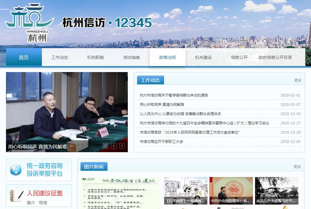 杭州市信訪局(“12345”市長公開電話受理中心)是負責全市信訪工作的部門,列黨委機構(gòu)序列。其主要職責是:(一)負責處理人民群眾給市委、市政府的來信來訪,承辦上級機關(guān)和市委、市政府領(lǐng)導轉(zhuǎn)辦、交辦的信訪事項;向區(qū)、縣(市)和市直屬各單位轉(zhuǎn)辦、交辦信訪事項,并督促檢查其辦理情況。(二)協(xié)調(diào)處理重要信訪問題以及群眾集體來市或去上級機關(guān)上訪和異常、突發(fā)性信訪事件。(三)負責受理和處理基層單位、人民群眾通過市長公開電話和市長信箱、“12345”短信平臺等渠道反映的問題。(四)調(diào)查、研究、分析信訪和市長公開電話工作情況、信訪矛盾糾紛,及時準確地向市委、市政府提供信息和解決問題的建議。(五)指導全市信訪和市長公開電話業(yè)務(wù)工作,研究、起草有關(guān)信訪和市長公開電話工作的法規(guī)、規(guī)章草案;總結(jié)推廣信訪和市長公開電話工作經(jīng)驗,提出加強和改進信訪和市長公開電話工作的意見和建議。(六)組織開展人民建議征集和處理工作。(七)負責市政府的信訪事項復查復核工作。(八)組織培訓信訪和市長公開電話工作人員,指導信訪和市長公開電話工作部門的辦公自動化建設(shè)。(九)根據(jù)信訪條例規(guī)定,對有關(guān)信訪干部和信訪群眾提出獎勵或處罰建議。(十)承辦市委、市政府交辦的其他事項。
