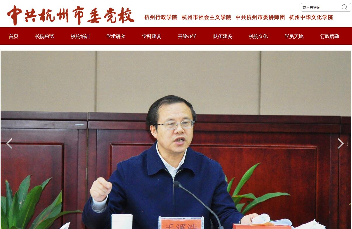 中共杭州市委黨校始建于1952年1月。1991年6月,成立杭州市社會主義學院;1994年11月,成立杭州行政學院;2001年10月,市委講師團并入黨校;2015年9月,批準成立杭州中華文化學院;形成了“五塊牌子、一套班子”的管理體制。2008年10月市委黨校與6個城區(qū)分校合并,蕭山、余杭區(qū)黨校改為市委黨校分校,在市區(qū)形成“一主兩翼”辦學新格局。校院新校區(qū)地處杭州之江國家旅游度假區(qū)浮山地塊,占地230畝,建筑面積10萬平方米,2008年9月啟用。新校區(qū)建筑以江南園林特色為主流,功能集教學、科研、餐飲、住宿、體育鍛煉與圖書閱覽(借閱)于一體,擁有大中小教室、研討室及報告廳70多個,可同時容納2000人培訓教學、1500人就餐和1500人住宿。市委黨校在市委領(lǐng)導下實行校務委員會負責制。市委常委、組織部長毛溪浩兼任黨校校長。市委常委、常務副市長戴建平兼任行政學院院長。市政協(xié)副主席馮仁強兼任社會主義學院院長。校院現(xiàn)有在職人員160余人,其中專業(yè)技術(shù)人員68人(其中高級職稱44人),有博士(含在讀)21人。校院有內(nèi)設(shè)機構(gòu)21個,其中實行參照公務員管理的行政機構(gòu)11個;下屬單位1個。校院設(shè)置有馬克思主義基本理論教研部、黨史黨建與統(tǒng)戰(zhàn)教研部、經(jīng)濟學教研部、公共管理教研部、政治學與法學教研部、文化學與社會學教研部、市情研究所、學報編輯部等8個教研部門和圖書館、信息化管理中心2個教輔部門。校院后勤實行社會化服務,其中,賓館餐飲等實行委托經(jīng)營管理模式,由杭州五洋賓館集團派出專業(yè)團隊負責落實;物業(yè)實行“整體打包、服務外包”模式,由耀江物業(yè)管理有限公司負責承擔保安、保潔、保綠、設(shè)施運行和管理及會場(教室)服務等。當前,校院以《中國共產(chǎn)黨黨校工作條例》、《行政學院工作條例》、《中共中央關(guān)于加強和改進新形勢下黨校工作的意見》和《2010-2020年干部教育培訓改革綱要》精神為指導,深入貫徹落實習近平新時代中國特色社會主義思想和黨的十九大精神,全面落實黨的十九大作出的戰(zhàn)略部署和省市委決策要求。進一步增強“四個意識”,堅定“四個自信”。不忘初心、牢記使命,加強黨性修養(yǎng),堅定不移沿著“八八戰(zhàn)略”指引的路子走下去,以新?lián)斝伦鳛樽V寫杭州發(fā)展絢麗篇章,當好“八八戰(zhàn)略”再深化、改革開放再出發(fā)排頭兵,為建設(shè)獨特韻味別樣精彩世界名城、打造展示新時代中國特色社會主義的重要窗口而努力奮斗。