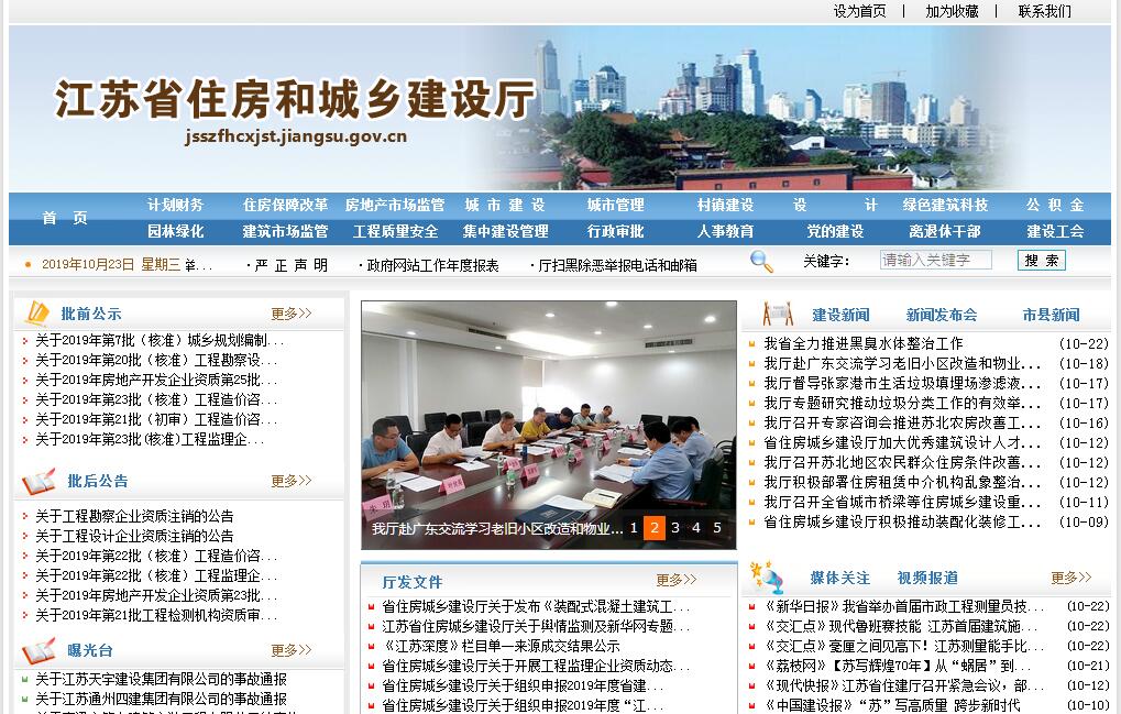 江蘇省住房和城鄉(xiāng)建設廳的主要職責是:(一)承擔規(guī)范全省住房和城鄉(xiāng)建設管理秩序的責任。起草住房和城鄉(xiāng)建設地方性法規(guī)、規(guī)章草案,制定規(guī)范性文件;研究提出住房和城鄉(xiāng)建設重大問題的政策建議。編制全省住房和城鄉(xiāng)建設發(fā)展規(guī)劃。指導全省住房和城鄉(xiāng)建設綜合行政執(zhí)法工作。組織開展全省住房和城鄉(xiāng)建設信用體系建設工作。(二)承擔全省城鎮(zhèn)住房保障和住房制度改革的責任。擬訂住房政策、住房保障政策和住房制度改革方案,并指導實施;組織編制全省住房和住房保障發(fā)展規(guī)劃、年度計劃并監(jiān)督實施。推進全省住房保障體系建設,建立并指導保障性安居工程運營管理制度的實施。會同有關部門做好中央、省有關廉租住房資金安排,指導和監(jiān)督市、縣組織實施。(三)承擔規(guī)范房地產市場秩序、監(jiān)督管理房地產市場的責任。擬訂房地產業(yè)發(fā)展和市場監(jiān)管政策并監(jiān)督執(zhí)行;提出房地產業(yè)的行業(yè)發(fā)展規(guī)劃并監(jiān)督實施;制定房地產開發(fā)、住宅產業(yè)化與性能認定、房地產交易與產權管理、房屋租賃、房屋面積管理、房地產估價與經(jīng)紀管理、物業(yè)管理、住宅裝飾裝修、國有土地上房屋征收等規(guī)章制度并監(jiān)督執(zhí)行。(四)承擔住房公積金管理和有效、安全使用的監(jiān)督責任。會同有關部門擬訂住房公積金政策及發(fā)展規(guī)劃并組織實施;制定住房公積金繳存、使用、管理和監(jiān)督制度。監(jiān)督全省住房公積金和其他住房資金的管理、使用和安全。管理住房公積金信息系統(tǒng)。(五)承擔設計行業(yè)發(fā)展和管理的責任。擬訂工程勘察設計咨詢業(yè)發(fā)展規(guī)劃、技術政策和規(guī)章制度。指導城市設計、建筑設計、工程勘察設計工作,會同有關部門負責歷史文化名城(名鎮(zhèn)、名村)和歷史文化保護區(qū)的申報、保護規(guī)劃的審查報批和監(jiān)督實施工作。監(jiān)督管理施工圖設計審查工作。組織編制城鄉(xiāng)建設抗震防災規(guī)劃并監(jiān)督實施,負責各類房屋建筑及其附屬設施和市政設施抗震設防監(jiān)督管理,組織超限高層建筑工程抗震設防審查,指導各地開展應急避難場所建設。(六)承擔指導市政公用事業(yè)發(fā)展和市政基礎設施建設、管理的責任。擬訂全省城市市政基礎設施和市政公用事業(yè)發(fā)展規(guī)劃,并指導實施。指導和規(guī)范全省市政公用事業(yè)發(fā)展。指導城市市政基礎設施的建設、管理工作,推進海綿城市、城市地下綜合管廊建設工作。組織全省人居環(huán)境獎的組織評選工作。(七)承擔指導城市管理工作的責任。擬定城市管理行政執(zhí)法、市容環(huán)衛(wèi)等城市管理的政策措施,并實施業(yè)務指導、組織協(xié)調、監(jiān)督檢查和考核評價。指導城鎮(zhèn)市容、環(huán)衛(wèi)、數(shù)字化城市管理工作及環(huán)境綜合整治工作。指導市容、環(huán)衛(wèi)設施的建設、維護及運營管理。(八)承擔監(jiān)督指導全省城市園林綠化工作的責任。制定全省城市園林綠化政策、發(fā)展規(guī)劃、技術規(guī)范并指導實施。指導城市規(guī)劃區(qū)內的綠地系統(tǒng)構建、生物多樣性及古樹名木保護等工作。指導城市公園建設管理、古典園林保護修復、傳統(tǒng)園林營造技藝傳承等工作。指導“園林城市”“生態(tài)園林城市”建設;負責江蘇省園藝博覽會的組織工作。(九)承擔規(guī)范和指導全省村鎮(zhèn)建設的責任。協(xié)同推進鄉(xiāng)村振興戰(zhàn)略,指導村鎮(zhèn)建設規(guī)劃編制,擬訂村莊和小城鎮(zhèn)建設政策并指導實施。指導農村住房建設和危房改造。指導小城鎮(zhèn)和村莊的人居環(huán)境改善工作。指導全省美麗宜居鄉(xiāng)村建設工程、特色田園鄉(xiāng)村、重點中心鎮(zhèn)和特色小城鎮(zhèn)的建設。指導全省傳統(tǒng)村落保護和發(fā)展工作。(十)承擔建立科學規(guī)范的工程建設標準體系的責任。制定和發(fā)布工程建設地方標準及標準設計并監(jiān)督執(zhí)行。制定和發(fā)布工程建設全省統(tǒng)一定額、計價依據(jù)和工程造價管理規(guī)章制度,監(jiān)督指導各類工程建設標準定額的實施和工程造價計價,組織發(fā)布工程造價信息。(十一)承擔監(jiān)督管理建筑市場、規(guī)范市場各方主體行為、推進建筑業(yè)發(fā)展的責任。擬訂建筑業(yè)行業(yè)發(fā)展戰(zhàn)略、中長期規(guī)劃、改革方案、產業(yè)政策、規(guī)章制度并監(jiān)督執(zhí)行。制定規(guī)范建筑市場主體及中介服務機構行為的規(guī)章制度并監(jiān)督實施;指導房屋建筑和市政基礎設施工程項目招投標活動、施工許可、竣工驗收和備案的監(jiān)督管理。負責工程建設實施階段的監(jiān)督管理,指導工程項目建設、合同管理和工程風險管理。促進建筑企業(yè)對外開拓市場、參與國際工程承包。擬訂全省政府投資工程集中建設的規(guī)章制度并監(jiān)督執(zhí)行,負責省級政府投資非盈利性工程項目集中建設日常指導和監(jiān)管。(十二)承擔建筑工程質量安全監(jiān)管的責任。制定建筑工程質量、安全生產的規(guī)章制度,指導建筑工程質量