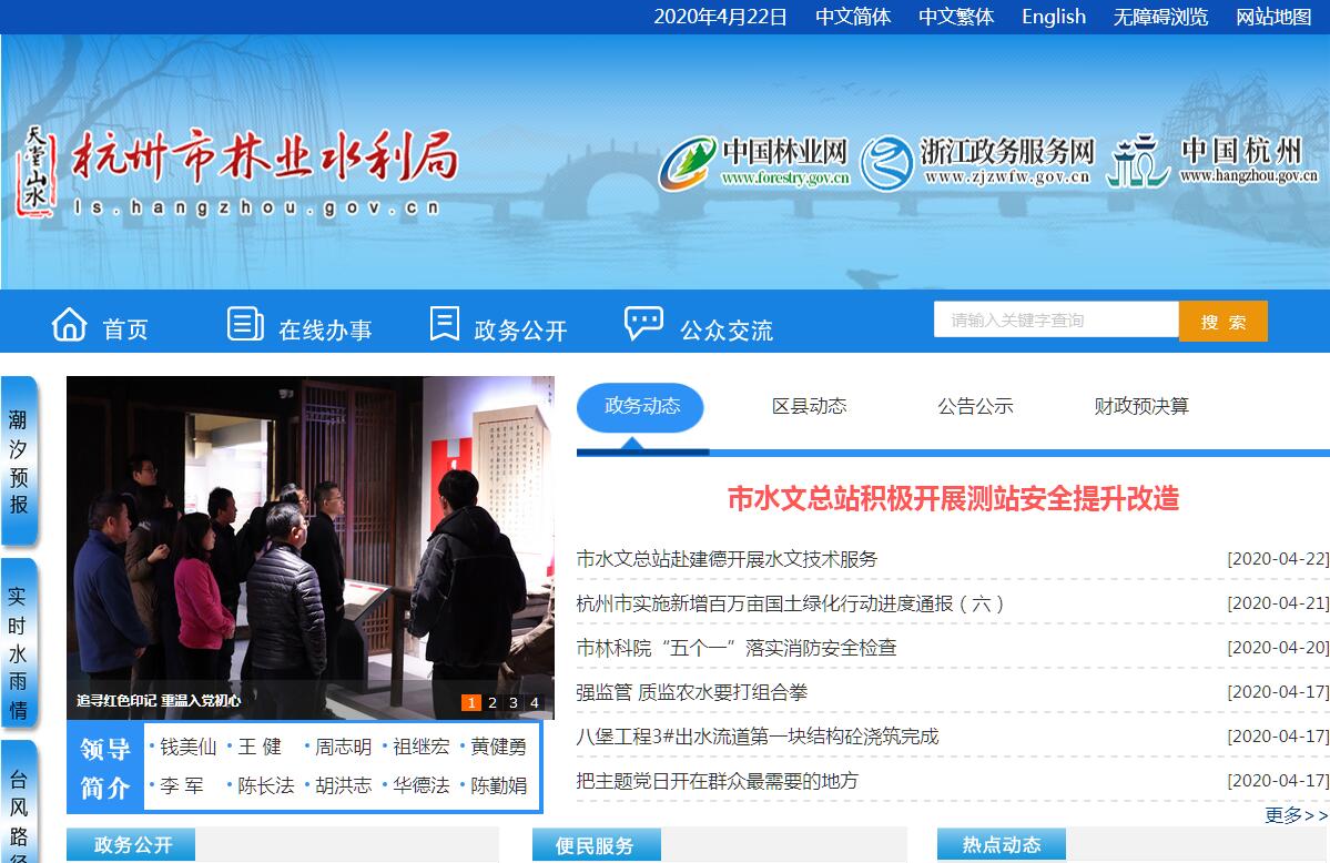 杭州市林業(yè)水利局貫徹落實黨中央、省委和市委關(guān)于林業(yè)、水利工作方針政策和決策部署,在履行職責(zé)過程中堅持和加強黨對林業(yè)、水利工作的集中統(tǒng)一領(lǐng)導(dǎo)。其主要職責(zé)是:(一)負(fù)責(zé)林業(yè)和草原及其生態(tài)保護修復(fù)的監(jiān)督管理。擬訂林業(yè)和草原及其生態(tài)保護修復(fù)的政策、規(guī)劃并組織實施。組織開展森林、濕地、草原、陸生野生動植物資源和水資源的動態(tài)監(jiān)測與評估。負(fù)責(zé)保障水資源的合理開發(fā)利用。擬訂水利中長期規(guī)劃和政策并組織實施。組織編制全市水資源、市級重要河湖和地區(qū)水利綜合規(guī)劃等水利規(guī)劃。依據(jù)國民經(jīng)濟和社會發(fā)展規(guī)劃、國土空間總體規(guī)劃,按權(quán)限組織編制防洪規(guī)劃并組織實施。起草有關(guān)林業(yè)、水利方面的地方性法規(guī)、規(guī)章草案。(二)組織林業(yè)和草原生態(tài)保護修復(fù)和國土綠化工作。指導(dǎo)森林資源的培育,組織實施森林、濕地和草原重點生態(tài)保護修復(fù)工程。負(fù)責(zé)林業(yè)和草原有害生物防治、檢疫工作。承擔(dān)林業(yè)應(yīng)對氣候變化的相關(guān)工作。指導(dǎo)、監(jiān)督全民義務(wù)植樹、城鄉(xiāng)綠化工作。(三)擬訂林業(yè)和草原資源優(yōu)化配置及利用政策,擬訂林草產(chǎn)業(yè)相關(guān)標(biāo)準(zhǔn)并監(jiān)督實施。負(fù)責(zé)林業(yè)和草原種苗監(jiān)督管理,監(jiān)督管理林業(yè)和草原生物種質(zhì)資源、轉(zhuǎn)基因生物安全、植物新品種保護。管理林木種苗、草種生產(chǎn)經(jīng)營行為。組織建立種質(zhì)資源庫,開展良種選育推廣,監(jiān)管林木種苗、草種質(zhì)量。組織、指導(dǎo)林產(chǎn)品質(zhì)量監(jiān)督和興林富民相關(guān)工作。(四)擬訂森林資源保護發(fā)展政策措施,會同有關(guān)部門擬訂濕地和草原保護利用規(guī)劃和相關(guān)標(biāo)準(zhǔn)。指導(dǎo)編制全市森林采伐限額并監(jiān)督實施。監(jiān)督管理濕地和草原的開發(fā)利用。負(fù)責(zé)全市林地管理,擬訂林地保護利用規(guī)劃并組織實施。組織指導(dǎo)公益林、天然林、商品林劃定、建設(shè)、保護和利用。指導(dǎo)國有林場建設(shè)和發(fā)展。組織開展陸生野生動植物資源調(diào)查,指導(dǎo)陸生野生動植物的救護繁育、棲息地保護和恢復(fù)、疫源疫病監(jiān)測。監(jiān)督管理陸生野生動植物獵捕或采集、人工繁育或培植、經(jīng)營利用。按分工監(jiān)督管理陸生野生動植物進出口、古樹名木保護。負(fù)責(zé)生物多樣性相關(guān)工作。(五)負(fù)責(zé)監(jiān)督管理各類自然保護地。擬訂各類自然保護地發(fā)展規(guī)劃、政策和相關(guān)標(biāo)準(zhǔn)并監(jiān)督實施。指導(dǎo)監(jiān)督各類自然保護地的設(shè)立、調(diào)整、規(guī)劃、建設(shè)、管理相關(guān)工作。負(fù)責(zé)市政府直接行使所有權(quán)的國家公園等自然保護地的自然資源資產(chǎn)管理和國土空間用途管制。指導(dǎo)世界自然遺產(chǎn)的申報,會同有關(guān)部門組織世界自然與文化雙重遺產(chǎn)的申報。(六)負(fù)責(zé)推進林業(yè)改革相關(guān)工作。擬訂深化集體林權(quán)制度、國有林場等重大改革意見并監(jiān)督實施。擬訂農(nóng)村林業(yè)發(fā)展、維護林業(yè)經(jīng)營者合法權(quán)益的政策措施,指導(dǎo)農(nóng)村林地承包經(jīng)營工作。指導(dǎo)林地承包經(jīng)營糾紛調(diào)解仲裁,協(xié)同調(diào)處林權(quán)權(quán)屬糾紛。(七)指導(dǎo)全市林業(yè)行政執(zhí)法工作。指導(dǎo)全市森林公安工作,監(jiān)督管理森林公安隊伍。監(jiān)督、協(xié)調(diào)、指導(dǎo)全市涉林刑事案件的偵辦和涉林治安案件的查處。指導(dǎo)水政監(jiān)察和水行政執(zhí)法,負(fù)責(zé)重大涉水違法事件的查處,協(xié)調(diào)跨區(qū)域水事糾紛的處理。(八)負(fù)責(zé)生活、生產(chǎn)經(jīng)營和生態(tài)環(huán)境用水的統(tǒng)籌和保障。組織實施最嚴(yán)格水資源管理制度,實施水資源的統(tǒng)一監(jiān)督管理。擬訂全市和跨區(qū)域水中長期供求規(guī)劃、水量分配方案并監(jiān)督實施。負(fù)責(zé)市級重要河湖、區(qū)域以及重大調(diào)水工程的水資源調(diào)度,組織實施取水許可、水資源論證和防洪論證制度,指導(dǎo)開展水資源有償使用工作。指導(dǎo)水利行業(yè)供水、農(nóng)村供水工作。(九)指導(dǎo)全市水資源保護和水文工作。組織編制水資源保護規(guī)劃并指導(dǎo)實施。指導(dǎo)飲用水水源保護有關(guān)工作,指導(dǎo)地下水開發(fā)利用和地下水資源管理保護。負(fù)責(zé)水文水資源監(jiān)測、水文站網(wǎng)建設(shè)和管理,對江河湖庫和地下水實施監(jiān)測,發(fā)布水文水資源信息、情報預(yù)報和全市水資源公報。按規(guī)定組織開展水資源評價和水資源承載能力監(jiān)測預(yù)警。(十)負(fù)責(zé)節(jié)約用水和水土保持工作。擬訂節(jié)約用水政策,組織編制節(jié)約用水規(guī)劃并監(jiān)督實施,組織制定有關(guān)標(biāo)準(zhǔn)。組織實施用水總量控制等管理制度,組織、監(jiān)督全市節(jié)約用水工作,指導(dǎo)