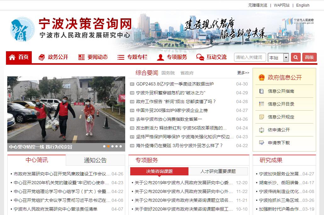 寧波決策咨詢網(wǎng)由寧波市人民政府發(fā)展研究中心主辦。根據(jù)市委決定,成立寧波市人民政府發(fā)展研究中心。市政府發(fā)展研究中心是全市綜合性經(jīng)濟社會發(fā)展研究機構,市委、市政府的決策咨詢機構和政府系統(tǒng)決策咨詢研究組織協(xié)調機構,為市政府直屬正局級事業(yè)單位。其主要職責是:(一)承擔市委、市政府提出的相關重大決策和重要課題的研究任務,組織專家咨詢論證;圍繞經(jīng)濟社會發(fā)展和改革開放中的全局性、綜合性、戰(zhàn)略性問題開展跟蹤研究和超前研究,為市委、市政府提供政策建議和咨詢意見,為制定中長期發(fā)展規(guī)劃和區(qū)域發(fā)展政策提出建議。(二)負責對本市有關重大決策方案、決策實施情況及決策績效的分析評估,及時對決策執(zhí)行情況進行跟蹤研究和反饋。(三)研究經(jīng)濟社會發(fā)展動態(tài),分析宏觀發(fā)展形勢,對城市建設、產(chǎn)業(yè)發(fā)展、港口建設、“三農(nóng)”工作、體制改革、對外開放、科技教育、人才開發(fā)、文化建設、社會發(fā)展等領域進行深入調查研究,提出戰(zhàn)略思路、對策建議和政策意見。(四)承擔全市政府系統(tǒng)決策咨詢研究工作的組織、協(xié)調和指導,負責政府系統(tǒng)決策專家?guī)旖ㄔO、聯(lián)絡和管理,組織全市政府系統(tǒng)決策咨詢學術大會及優(yōu)秀決策咨詢研究成果的評選活動,組織和協(xié)調全市經(jīng)濟社會發(fā)展重點課題和市政府重大決策咨詢課題研究。(五)承擔或參與市政府有關重要文件、報告的起草工作。(六)組織開展政府決策咨詢和經(jīng)濟社會發(fā)展研究對外合作交流與咨詢服務。(七)承辦市委、市政府交辦的其他事項。
