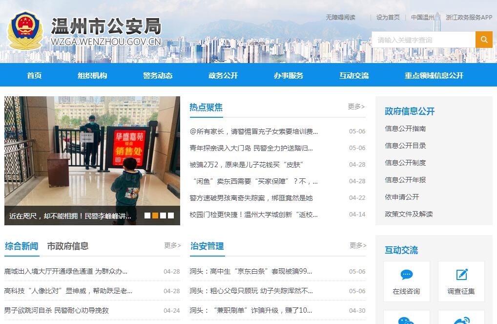 溫州市公安局主要職責(zé):(一)貫徹執(zhí)行黨和國(guó)家有關(guān)公安工作的方針、政策、法律、法規(guī)和市委、市政府、上級(jí)公安機(jī)關(guān)的指示;起草有關(guān)公安行政管理的規(guī)范性文件,經(jīng)審議通過(guò)后組織實(shí)施;部署、指導(dǎo)、監(jiān)督全市公安工作。(二)負(fù)責(zé)對(duì)影響社會(huì)穩(wěn)定和社會(huì)治安的形勢(shì)分析,研究提出對(duì)策措施;組織、指導(dǎo)110接處警等工作;組織、協(xié)調(diào)、指導(dǎo)全市反恐怖工作。(三)負(fù)責(zé)組織、指導(dǎo)國(guó)內(nèi)安全保衛(wèi)工作。(四)主管和指導(dǎo)經(jīng)濟(jì)、刑事犯罪等偵查工作,負(fù)責(zé)組織、協(xié)調(diào)特別重大案件和涉外、跨縣(市、區(qū))重大案件以及上級(jí)交辦案件的偵查工作;組織、指導(dǎo)全市公安刑事科學(xué)技術(shù)工作。(五)指導(dǎo)、監(jiān)督全市公安機(jī)關(guān)查處危害社會(huì)治安秩序行為,依法管理危險(xiǎn)物品、特種行業(yè)和內(nèi)河水域;負(fù)責(zé)組織、協(xié)調(diào)對(duì)嚴(yán)重危害社會(huì)治安秩序的重特大治安事件和突發(fā)性事件的處置工作,管理集會(huì)、游行、示威活動(dòng);組織、指揮公安特警隊(duì)的處突防暴工作;負(fù)責(zé)對(duì)全市保安服務(wù)活動(dòng)的監(jiān)督管理工作;配合、協(xié)調(diào)城市管理與行政執(zhí)法過(guò)程中行使相對(duì)集中行政處罰權(quán)的相關(guān)工作。(六)組織、指導(dǎo)全市公安基層基礎(chǔ)工作,完善治安防范體系;依法管理戶籍、居民身份證、流動(dòng)人口;組織、指導(dǎo)對(duì)全市國(guó)家機(jī)關(guān)、社會(huì)團(tuán)體、企事業(yè)單位和重點(diǎn)工程的治安保衛(wèi)工作以及群眾性治安保衛(wèi)組織的治安防范工作。(七)負(fù)責(zé)中國(guó)公民出入境和外國(guó)人在中國(guó)境內(nèi)居留、旅行的有關(guān)工作;承擔(dān)口岸簽證、簽注工作。(八)指導(dǎo)全市公安武警邊防部隊(duì)的公安業(yè)務(wù)工作,指揮、調(diào)動(dòng)本市區(qū)域(全市)的公安武警邊防部隊(duì)執(zhí)行地方治安管理等公安任務(wù)。(九)負(fù)責(zé)本市行政區(qū)域內(nèi)(全市)的消防監(jiān)督管理工作;領(lǐng)導(dǎo)公安消防部隊(duì)承擔(dān)重大災(zāi)害事故和其他以搶救人員生命為主的應(yīng)急救援工作。(十)負(fù)責(zé)組織、指導(dǎo)、監(jiān)督對(duì)全市道路交通安全、交通秩序維護(hù)以及機(jī)動(dòng)車輛、駕駛員管理工作;指導(dǎo)、監(jiān)督本市行政區(qū)域內(nèi)(轄區(qū))高速公路的交通管理工作。(十一)按照規(guī)定權(quán)限,組織、指導(dǎo)計(jì)算機(jī)信息系統(tǒng)及互聯(lián)網(wǎng)安全保護(hù)管理工作,組織、指導(dǎo)網(wǎng)絡(luò)犯罪偵查。(十二)指導(dǎo)、監(jiān)督全市看守所、拘留所、收容教育所和公安機(jī)關(guān)管理(所屬)的強(qiáng)制隔離戒毒所的工作;管理市看守所、市拘留所、市收容教育所、市三垟強(qiáng)制隔離戒毒所。(十三)組織、指導(dǎo)全市公安法制工作;指導(dǎo)、監(jiān)督全市公安機(jī)關(guān)執(zhí)法活動(dòng);承辦市勞動(dòng)教養(yǎng)審批工作;承擔(dān)行政復(fù)議、應(yīng)訴、國(guó)家賠償?shù)劝讣霓k理工作。(十四)組織實(shí)施對(duì)來(lái)溫的黨和國(guó)家領(lǐng)導(dǎo)人、重要外賓以及重大活動(dòng)、重要會(huì)議的安全警衛(wèi)工作。(十五)組織、協(xié)調(diào)、指導(dǎo)全市禁毒、緝毒工作。(十六)組織、指導(dǎo)全市公安科學(xué)技術(shù)和信息化工作;負(fù)責(zé)全市公安機(jī)關(guān)信息通信勤務(wù)保障工作的規(guī)劃協(xié)調(diào)和組織指導(dǎo);負(fù)責(zé)管理全市社會(huì)公共安全技術(shù)防范業(yè)務(wù)。(十七)指導(dǎo)、管理全市公安機(jī)關(guān)裝備、被裝、經(jīng)費(fèi)和基本建設(shè)等警務(wù)保障工作。(十八)領(lǐng)導(dǎo)全市公安消防、警衛(wèi)部隊(duì)建設(shè),按規(guī)定權(quán)限協(xié)管公安消防、警衛(wèi)部隊(duì)領(lǐng)導(dǎo)干部以及對(duì)武警部隊(duì)執(zhí)行公安任務(wù)實(shí)施領(lǐng)導(dǎo)和指揮。(十九)組織、指導(dǎo)全市公安隊(duì)伍建設(shè),組織實(shí)施并指導(dǎo)全市公安宣傳、教育、訓(xùn)練工作;按規(guī)定權(quán)限管理干部人事工作。(二十)按規(guī)定權(quán)限實(shí)施對(duì)全市公安機(jī)關(guān)及人民警察的監(jiān)督;領(lǐng)導(dǎo)全市公安機(jī)關(guān)督察工作,組織、指導(dǎo)維護(hù)民警執(zhí)法權(quán)益工作;查處或督辦公安隊(duì)伍重大違紀(jì)案件;組織、指導(dǎo)全市公安內(nèi)部審計(jì)工作。(二十一)指導(dǎo)鐵路、森林公安機(jī)構(gòu)的業(yè)務(wù)工作。(二十二)承辦市政府和上級(jí)公安機(jī)關(guān)交辦的其他事項(xiàng)。