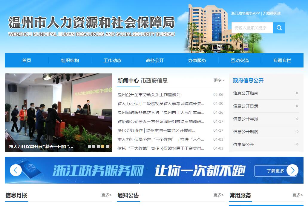 溫州市人力資源和社會(huì)保障局(以下簡(jiǎn)稱“溫州市人力社保局”)是主管全市人力資源和社會(huì)保障工作的市政府組成部門。其主要職責(zé)是:1.貫徹執(zhí)行黨和國家、省關(guān)于人力資源和社會(huì)保障工作的方針、政策和法律、法規(guī)、規(guī)章;起草人力資源和社會(huì)保障工作規(guī)范性文件草案,擬訂相應(yīng)的政策及實(shí)施辦法,并組織實(shí)施和監(jiān)督檢查。2.負(fù)責(zé)編制全市人力資源和社會(huì)保障事業(yè)發(fā)展規(guī)劃,擬訂機(jī)關(guān)企事業(yè)單位人事制度改革方案、勞動(dòng)和社會(huì)保障制度改革方案并組織實(shí)施;編制全市機(jī)關(guān)和市屬事業(yè)單位人員計(jì)劃,監(jiān)督檢查計(jì)劃執(zhí)行情況;負(fù)責(zé)全市人力資源和社會(huì)保障方面的統(tǒng)計(jì)工作。3.綜合管理全市人才開發(fā)工作,會(huì)同有關(guān)部門擬訂實(shí)施全市人才發(fā)展戰(zhàn)略、規(guī)劃和綜合性政策;負(fù)責(zé)指導(dǎo)和協(xié)調(diào)全市人才選拔、培養(yǎng)、引進(jìn)項(xiàng)目的組織實(shí)施;擬訂人力資源市場(chǎng)發(fā)展規(guī)劃和人力資源流動(dòng)政策,建立統(tǒng)一規(guī)范的人力資源市場(chǎng),促進(jìn)人力資源合理流動(dòng)、有效配置。4.負(fù)責(zé)促進(jìn)就業(yè)創(chuàng)業(yè)工作;擬訂統(tǒng)籌城鄉(xiāng)的就業(yè)發(fā)展規(guī)劃和政策,完善公共就業(yè)服務(wù)體系和就業(yè)援助制度;牽頭擬訂高校畢業(yè)生就業(yè)創(chuàng)業(yè)政策,負(fù)責(zé)高校和中等專業(yè)學(xué)校畢業(yè)生就業(yè)創(chuàng)業(yè)指導(dǎo)和服務(wù)工作;擬訂并組織實(shí)施失業(yè)保險(xiǎn)政策;建立健全就業(yè)、失業(yè)預(yù)測(cè)預(yù)警、監(jiān)控分析制度,保持就業(yè)形勢(shì)穩(wěn)定;完善職業(yè)技能資格制度,統(tǒng)籌建立面向城鄉(xiāng)勞動(dòng)者的職業(yè)技能培訓(xùn)制度。5.負(fù)責(zé)統(tǒng)籌城鄉(xiāng)的社會(huì)保障體系;擬訂城鄉(xiāng)社會(huì)保險(xiǎn)及其補(bǔ)充保險(xiǎn)政策和標(biāo)準(zhǔn),逐步提高基金統(tǒng)籌層次;擬訂全市社會(huì)保險(xiǎn)關(guān)系的轉(zhuǎn)續(xù)政策;會(huì)同有關(guān)部門擬訂社會(huì)保險(xiǎn)基金、社會(huì)保險(xiǎn)市級(jí)調(diào)劑金及補(bǔ)充社會(huì)保險(xiǎn)基金管理和監(jiān)督辦法,組織編制社會(huì)保險(xiǎn)基金預(yù)決算草案;組織實(shí)施社會(huì)保險(xiǎn)基金的預(yù)測(cè)預(yù)警分析,擬訂應(yīng)對(duì)措施;管理所屬社會(huì)保險(xiǎn)經(jīng)辦機(jī)構(gòu),負(fù)責(zé)社會(huì)保險(xiǎn)服務(wù)體系建設(shè);負(fù)責(zé)各類補(bǔ)充保險(xiǎn)相關(guān)內(nèi)容的審核和備案。6.會(huì)同有關(guān)部門擬訂機(jī)關(guān)企事業(yè)單位人員工資收入分配政策,建立機(jī)關(guān)企事業(yè)單位人員工資正常增長和支付保障機(jī)制;擬訂機(jī)關(guān)事業(yè)單位人員福利和離退休政策;推進(jìn)企業(yè)退休人員社會(huì)化管理;制定市屬事業(yè)單位工資總額和工資計(jì)劃管理政策,負(fù)責(zé)市屬機(jī)關(guān)事業(yè)單位人員和工資總額的管理和審核,負(fù)責(zé)企業(yè)職工工資的宏觀調(diào)控工作。7.會(huì)同有關(guān)部門指導(dǎo)全市事業(yè)單位改革和人事制度改革;擬訂事業(yè)單位人員和機(jī)關(guān)工勤人員管理政策;綜合管理事業(yè)單位人員的聘用、考核、培訓(xùn)、獎(jiǎng)懲以及公開招聘、崗位設(shè)置管理等工作;受市委、市政府委托,會(huì)同有關(guān)部門實(shí)施市級(jí)國資營運(yùn)公司人事管理有關(guān)工作。8.擬訂專業(yè)技術(shù)人員管理和繼續(xù)教育政策;牽頭推進(jìn)深化職稱制度改革,組織實(shí)施專業(yè)技術(shù)職業(yè)資格制度;負(fù)責(zé)專業(yè)技術(shù)人員的資格評(píng)價(jià)和資格考試工作;歸口管理博士后和留學(xué)人員來溫工作;擬訂高技能人才培養(yǎng)和激勵(lì)政策;會(huì)同有關(guān)部門擬訂農(nóng)村實(shí)用人才培養(yǎng)和激勵(lì)政策。9.負(fù)責(zé)全市引進(jìn)國(境)外人才智力工作,擬訂全市引進(jìn)國(境)外人才智力政策;負(fù)責(zé)全市外國專家及港澳臺(tái)專家的管理工作;歸口管理全市出國(境)培訓(xùn)工作;負(fù)責(zé)促進(jìn)國(境)外人才智力交流與合作工作;負(fù)責(zé)組織評(píng)選市“雁蕩友誼獎(jiǎng)”。10.會(huì)同有關(guān)部門擬訂軍隊(duì)轉(zhuǎn)業(yè)干部安置政策和安置計(jì)劃,并按管理權(quán)限組織實(shí)施;負(fù)責(zé)軍隊(duì)轉(zhuǎn)業(yè)干部教育培訓(xùn)工作;負(fù)責(zé)貫徹落實(shí)部分企業(yè)軍隊(duì)轉(zhuǎn)業(yè)干部解困和穩(wěn)定政策;負(fù)責(zé)自主擇業(yè)軍隊(duì)轉(zhuǎn)業(yè)干部管理服務(wù)工作。11.負(fù)責(zé)全市行政機(jī)關(guān)公務(wù)員綜合管理;會(huì)同有關(guān)部門完善公務(wù)員制度;擬訂有關(guān)人員調(diào)配政策和特殊人員安置政策;會(huì)同有關(guān)部門擬訂實(shí)施本市榮譽(yù)制度、政府獎(jiǎng)勵(lì)制度;組織開展政府公務(wù)員考核;受市政府委托管理市行政學(xué)院;承辦市政府人事任免手續(xù)。12.會(huì)同有關(guān)部門擬訂農(nóng)民工工作綜合性政策和規(guī)