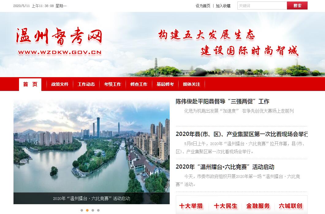 | 網(wǎng)站簡介: 溫州督考網(wǎng)由溫州市考績委員會辦公室,中共溫州市委督查室,溫州市人民政府督查室主辦。 |