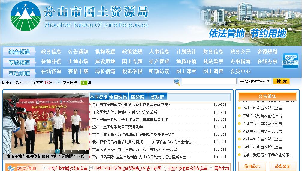 舟山市國土資源局主要職責:(一)負責新區(qū)(全市)土地、礦產(chǎn)等自然資源的保護和合理利用。開展新區(qū)(全市)國土資源經(jīng)濟形勢分析,研究提出新區(qū)(全市)國土資源供需總量平衡的政策建議;編制和實施新區(qū)(全市)國土規(guī)劃、土地利用總體規(guī)劃、土地利用年度計劃和其它專項規(guī)劃;指導、審核縣(區(qū))、鄉(xiāng)鎮(zhèn)(街道)土地利用總體規(guī)劃;編制和實施新區(qū)(全市)礦產(chǎn)資源總體規(guī)劃、地質(zhì)災害防治規(guī)劃及專項規(guī)劃;指導、審核縣(區(qū))礦產(chǎn)資源規(guī)劃、地質(zhì)災害防治規(guī)劃及專項規(guī)劃;監(jiān)督檢查國土資源各類規(guī)劃執(zhí)行情況。(二)負責新區(qū)(全市)國土資源管理秩序的規(guī)范。貫徹執(zhí)行黨和國家及省有關(guān)國土資源管理的法律、法規(guī)、規(guī)章和政策;制定管理、保護和合理利用土地、礦產(chǎn)等自然資源和地質(zhì)環(huán)境管理的政策;負責國土資源行政執(zhí)法工作,調(diào)查處理國土資源重大違法案件;辦理征地補償標準爭議的協(xié)調(diào)、裁決事宜。(三)負責新區(qū)(全市)耕地保護。牽頭擬訂并實施耕地保護政策,組織實施基本農(nóng)田(含標準農(nóng)田)保護,監(jiān)督占用耕地補償制度執(zhí)行情況;指導和監(jiān)督未利用土地開發(fā)、土地整理、土地復墾和耕地開發(fā)工作,確保耕地占補平衡;組織實施土地用途管制、農(nóng)用地轉(zhuǎn)用和土地征收征用,承擔報國務院、省政府、市政府審批的各類用地的農(nóng)地轉(zhuǎn)用、征收征用的審核、報批工作。(四)負責規(guī)范新區(qū)(全市)國土資源權(quán)屬管理。依法保護土地、礦產(chǎn)等自然資源所有者和使用者的合法權(quán)益,承辦和組織調(diào)處重大權(quán)屬糾紛,組織實施土地確權(quán)工作;制定地籍管理辦法,加強土地登記規(guī)范化管理;組織開展土地資源調(diào)查、地籍調(diào)查、動態(tài)監(jiān)測和土地統(tǒng)計;指導城鄉(xiāng)地籍、土地登記和土地分等定級工作。(五)負責新區(qū)(全市)節(jié)約集約利用土地資源工作。按規(guī)定組織實施土地使用權(quán)出讓、租賃、作價出資、轉(zhuǎn)讓和政府收購儲備工作;組織實施國有土地使用權(quán)招標拍賣掛牌出讓工作;指導農(nóng)村集體非農(nóng)建設(shè)用地使用權(quán)的流轉(zhuǎn)管理;管理和監(jiān)督城鄉(xiāng)建設(shè)用地供應、政府土地儲備、土地開發(fā)和節(jié)約集約利用;監(jiān)測建設(shè)用地利用情況,規(guī)范和監(jiān)管土地市場;承擔改制企業(yè)的國有土地資產(chǎn)管理及處置;負責地價監(jiān)管,編制基準地價、標定地價,并定期監(jiān)測。(六)負責規(guī)范和監(jiān)管礦業(yè)權(quán)市場。擬訂新區(qū)(全市)礦業(yè)權(quán)市場的運行規(guī)則和管理辦法,組織實施探礦權(quán)、采礦權(quán)的行政授予、招標拍賣掛牌出讓;監(jiān)督管理新區(qū)(全市)礦業(yè)權(quán)市場。(七)負責新區(qū)(全市)礦產(chǎn)資源勘查、開發(fā)管理工作。對礦產(chǎn)資源勘查、開發(fā)、保護和合理利用進行監(jiān)督管理;組織開展新區(qū)(全市)礦產(chǎn)資源開發(fā)利用年檢、年報和礦產(chǎn)督察工作;依法征收和使用礦產(chǎn)資源補償費,負責礦山生態(tài)環(huán)境保護的監(jiān)督管理;審核選礦許可證,監(jiān)督管理獨立選礦活動;承擔礦產(chǎn)資源儲量管理工作。(八)負責地質(zhì)災害勘察、預防、治理和地質(zhì)環(huán)境保護。組織、協(xié)調(diào)、指導和監(jiān)督地質(zhì)災害防治工作,制定并組織實施地質(zhì)災害防治方案以及重大地質(zhì)災害等國土資源突發(fā)事件應急預案;指導地質(zhì)災害應急處置;負責地質(zhì)災害危險評估、勘察設(shè)計、監(jiān)理、施工單位資質(zhì)審查認證的管理;監(jiān)測、監(jiān)督地下水過量開采和污染;保護地質(zhì)遺跡,防止地質(zhì)環(huán)境破壞。(九)負責組織征收土地、礦產(chǎn)資源非稅收入,指導、監(jiān)督國家和省、市財政撥給的國土資源專項經(jīng)費和其它資金的使用。(十)負責國土資源科技和人才工作。編制和實施新區(qū)(全市)國土資源人才發(fā)展和人才培養(yǎng)規(guī)劃、計劃,負責新區(qū)(全市)國土資源管理隊伍建設(shè);組織開展土地、礦產(chǎn)資源的科技工作和對外合作交流;推進國土資源信息化和信息資料的公共服務。(十一)承辦新區(qū)黨工委、管委會和市委、市政府交辦的其他事項。
