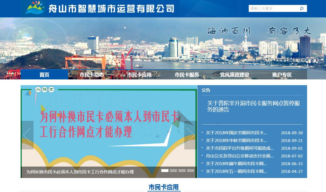 舟山市智慧城市運營有限公司(Zhoushan Smart City Operation Co., Ltd.)前身為舟山市城市一卡通有限公司,由舟山市城市信息化發(fā)展有限公司和舟山商貿(mào)集團有限公司共同出資組建,成立于2011年6月,屬于舟山市屬全資國企。公司融軟件和信息技術(shù)服務(wù),計算機軟硬件的開發(fā)設(shè)計、制作銷售,全市大數(shù)據(jù)匯聚處理,信息化及智能化安防系統(tǒng)工程設(shè)計、安裝、維護,網(wǎng)絡(luò)策劃推廣與運營,金融信息技術(shù)、知識流程外包服務(wù),職業(yè)技能培訓(xùn)等業(yè)務(wù)為一體,主要承接舟山市政府授權(quán)的一中心兩平臺(智慧大腦-市民大數(shù)據(jù)中心、舟山市民卡和舟山市智慧民生公共服務(wù)平臺)與舟山市智慧城市運營中心、舟山市公共信用信息服務(wù)平臺運營中心的運營工作,是我市唯一一家專業(yè)的公共服務(wù)運營商和綜合實力較強的舟山本土大型國有信息化企業(yè),同時也是舟山市信息化協(xié)會的發(fā)起單位。公司技術(shù)力量雄厚,基于以人為本的人才信念,堅持重要崗位配備專業(yè)技術(shù)人員,積極為員工創(chuàng)造對外參觀學(xué)習(xí)、培訓(xùn)交流的機會,擁有優(yōu)秀的管理團隊和IT專家組成的技術(shù)團隊,員工總數(shù)發(fā)展至百余人,整體隊伍年輕化、專業(yè)化。側(cè)重民生公共服務(wù)項目和科技研發(fā)投入,先后獲得“國家高新技術(shù)企業(yè)”、“計算機信息系統(tǒng)集成(四級)資質(zhì)”、“軟件企業(yè)”、“國家金卡工程標準成果應(yīng)用獎”、“中國‘互聯(lián)網(wǎng)+政務(wù)’優(yōu)秀實踐案例50強”、 “浙江省高成長科技型中小企業(yè)”、15項軟件著作權(quán)、3項專利等榮譽。公司已承接舟山政務(wù)云、工業(yè)云、人口基礎(chǔ)數(shù)據(jù)庫、全市數(shù)據(jù)交換平臺、征信平臺、市民卡清分清算管理平臺、舟山市企業(yè)分類綜合評價平臺、普陀山景區(qū)票務(wù)系統(tǒng)、朱家尖景區(qū)票務(wù)系統(tǒng)、舟山公交和BRT系統(tǒng)、舟山公交移動支付系統(tǒng)、體育局全民健身系統(tǒng)、政府(國企)網(wǎng)站、等運營維護工作,定海區(qū)停車咪表、舟山海洋產(chǎn)業(yè)集聚區(qū)公共自行車租賃、舟山市政府投資信息化監(jiān)管、群島新區(qū)志愿者平臺等項目建設(shè)維護工作,具備較強的信息化技術(shù)能力、運營能力、創(chuàng)新能力和團隊實力。公司一直立足于“走出舟山,輻射全國”的發(fā)展定位,恪守“以創(chuàng)新培植發(fā)展新動能,以智慧引領(lǐng)新型城市建設(shè)”的經(jīng)營理念,逐步建立適應(yīng)市場需求的企業(yè)運行機制,積極拓展市內(nèi)外業(yè)務(wù)合作,與阿里數(shù)夢成立舟山大數(shù)據(jù)有限公司,并在兩區(qū)兩縣成立舟山市智慧城市運營有限公司(定海、普陀、岱山、嵊泗)分公司。公司同時注重企業(yè)管理,建立健全各項規(guī)章制度,對外精誠合作,引進先進技術(shù)、設(shè)備及科學(xué)的管理模式。力爭與每一客戶建立和保持長期的良好的合作關(guān)系,將“服務(wù)”貫穿于公司運作和管理的每一個細節(jié),把簡單的事情做到最極致。公司運營的舟山市社會保障·市民卡(V1.0版本)是由市政府主導(dǎo)的集社會保障、門診掛號、公交出行、日常消費、銀行業(yè)務(wù)、政務(wù)應(yīng)用、行業(yè)管理、商業(yè)應(yīng)用為一體的實名制智能IC卡,廣泛應(yīng)用于個人辦理社會事務(wù)、享受公共服務(wù)、電子身份標識、日常消費支付、商業(yè)功能加載等領(lǐng)域。累計發(fā)卡量已達115余萬張,融合了醫(yī)保、就診、景區(qū)年卡、公共自行車租賃、公交、停車咪表、圖書館借閱、學(xué)校體育設(shè)施對外開放學(xué)校門禁應(yīng)用、定海區(qū)困難精神殘康復(fù)服藥補助、企事業(yè)單位一卡通等應(yīng)用,年使用次數(shù)超過一億次,是市民生活中必不可少的一張卡。2016年1月1日,公司實施互聯(lián)網(wǎng)+戰(zhàn)略開發(fā)舟山市民卡TSM平臺,打造市民卡應(yīng)用的空中發(fā)卡、空中充值和在線消費三位一體的核心功能,并以此為通道建立智慧民生運營APP平臺(V2.0版本)。舟山智慧民生公共服務(wù)平臺作為浙江省智慧城市舟山建設(shè)試點項目,以“互聯(lián)網(wǎng)+”和“機器換人”的理念和思路,充分利用云計算、大數(shù)據(jù)、物聯(lián)網(wǎng)、移動互聯(lián)網(wǎng)等現(xiàn)代信息技術(shù),整合政府服務(wù)、公共事業(yè)服務(wù)、社會服務(wù)等資源,以“一卡、一號、一頁、一端、一站”為主要形式,構(gòu)建智能化、一體化、聯(lián)動化智慧民生公共服務(wù)平臺。該平臺由PC版、IOS版和Android版三個版本組合而成,后臺數(shù)據(jù)統(tǒng)一,為市民提供一個虛擬化的集中網(wǎng)上民生服務(wù)大廳,并以市民卡為載體,以市民卡TSM平臺為通道,通過各部門入駐,建立對應(yīng)網(wǎng)上虛擬服務(wù)窗口和服務(wù)通道,為市民提供個性化、定制式民生服務(wù)。2016年9月公司以舟山海洋云、市民卡、全市數(shù)據(jù)交換平臺等資源為基礎(chǔ),投資建設(shè)和運營全國首個市民大數(shù)據(jù)中心(V3.0版本)。該中心秉承“激活數(shù)據(jù)資源,開創(chuàng)數(shù)據(jù)時代”的發(fā)展理念,以“數(shù