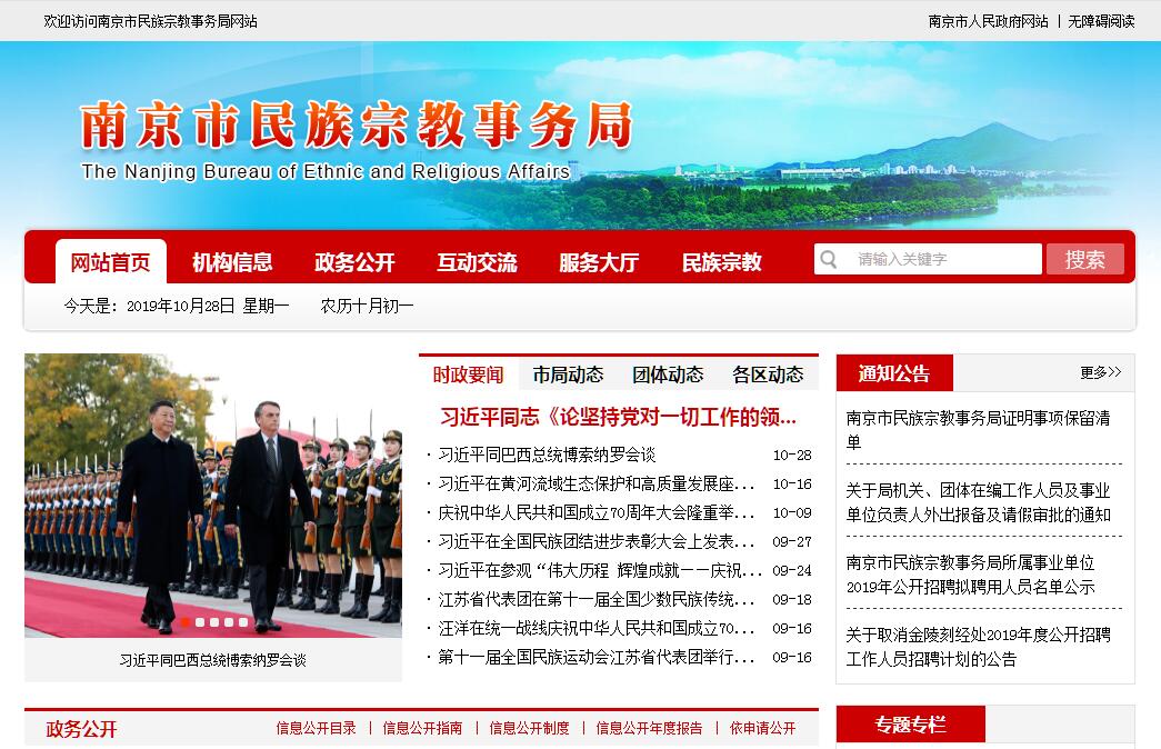 南京市民族宗教事務(wù)局主要職責(zé):(一)貫徹執(zhí)行民族宗教工作的方針、政策,組織開展民族宗教工作重大問題的調(diào)查研究,提出政策建議。(二)起草南京市民族宗教地方性法規(guī)、規(guī)章草案,擬定相關(guān)政策建議,負(fù)責(zé)督促檢查貫徹落實(shí)情況。開展民族宗教政策法規(guī)宣傳教育。協(xié)調(diào)有關(guān)部門履行民族宗教工作的相關(guān)職責(zé)。(三)會(huì)同有關(guān)部門管理少數(shù)民族專項(xiàng)資金,會(huì)同有關(guān)部門做好少數(shù)民族扶貧工作,指導(dǎo)少數(shù)民族發(fā)展經(jīng)濟(jì)。加強(qiáng)與民族學(xué)校和開辦的民族班的聯(lián)系。(四)協(xié)助有關(guān)部門扶持和管理清真食品的有關(guān)工作,負(fù)責(zé)回族等10個(gè)少數(shù)民族的殯葬管理工作;協(xié)助有關(guān)部門做好民族地區(qū)的經(jīng)濟(jì)技術(shù)合作、對口支援工作。(五)依法維護(hù)全市少數(shù)民族公民的合法權(quán)益,組織和承辦民族團(tuán)結(jié)進(jìn)步表彰活動(dòng),協(xié)助有關(guān)部門做好培養(yǎng)選拔少數(shù)民族干部工作。(六)依法履行宗教事務(wù)管理職責(zé)。依法保護(hù)公民宗教信仰自由和正常的宗教活動(dòng),維護(hù)宗教界合法權(quán)益。依法管理在寧境外人員集體宗教活動(dòng)。(七)指導(dǎo)宗教團(tuán)體,基督教青年會(huì)、女青年會(huì)依法依章開展活動(dòng),支持宗教團(tuán)體,基督教青年會(huì)、女青年會(huì)加強(qiáng)自身建設(shè),推動(dòng)宗教團(tuán)體,基督教青年會(huì)、女青年會(huì)開展愛國主義、社會(huì)主義、擁護(hù)祖國統(tǒng)一和民族團(tuán)結(jié)的自我教育,辦理宗教團(tuán)體,基督教青年會(huì)、女青年會(huì)需由政府解決和協(xié)調(diào)的有關(guān)事務(wù)。(八)指導(dǎo)全市民族宗教事務(wù)部門依法履行職責(zé),處理民族宗教事務(wù)的重大事項(xiàng)。防范和處理利用宗教進(jìn)行的非法、違法活動(dòng),抵御境外利用宗教進(jìn)行滲透活動(dòng)。(九)受中國佛教協(xié)會(huì)委托,做好金陵刻經(jīng)處的管理工作;受江蘇省宗教事務(wù)局委托,做好中國佛學(xué)院棲霞山分院、江蘇尼眾佛學(xué)院的管理工作。(十)負(fù)責(zé)宗教方面的外事歸口管理工作。組織指導(dǎo)全市民族宗教事務(wù)部門和宗教界開展對外以及對港澳臺(tái)的宗教交往活動(dòng)。(十一)承辦市委、市政府交辦的其他事項(xiàng)。