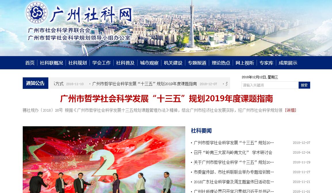 廣州市社會科學界聯(lián)合會(簡稱廣州市社科聯(lián))是在廣州市委領導下的以廣州地區(qū)社會科學工作者為主體的學術性人民團體,是黨委、政府聯(lián)系社會科學界人士的橋梁和紐帶,是政府管理社會科學學術團體的參謀和助手。廣州市社聯(lián)成立于1983年12月21日,現(xiàn)有團體會員84個,其中由廣州市社科聯(lián)作為業(yè)務主管的團體會員67個,會員人數(shù)達8萬余人。廣州市社科聯(lián)的主要職能包括:對業(yè)務主管的市一級社會科學學術團體進行資格審查、指導、監(jiān)督和管理;指導和協(xié)調(diào)團體會員開展學術研究與交流、人才培訓、社會科學知識普及和各種智力開發(fā)工作;做好社會科學規(guī)劃工作,開展課題招標、課題資助,組織社會科學研究優(yōu)秀成果評獎;推動社會科學成果的轉化和應用;組織協(xié)調(diào)開展有關學術研究活動,積極開展國內(nèi)外學術交流活動;反映社會科學界的愿望與要求,維護社會科學工作者的正當權益。廣州市社科聯(lián)機關內(nèi)設辦公室、學會工作部、科研規(guī)劃部、社會科學普及與拓展部;下轄城市觀察雜志社。廣州市社科聯(lián)多次被評為全國優(yōu)秀社科聯(lián)。廣州市社科聯(lián)主辦的《城市觀察》雜志創(chuàng)辦于2009年7月。該刊是以城市研究為主的高端學術期刊,立足國家中心城市、依托大城市群,力求“聚集全球城市研究智慧資源,構建城市科學發(fā)展公共智庫”,積極探索城市科學發(fā)展的規(guī)律和經(jīng)驗,展現(xiàn)當今世界城市的最新理論和趨勢,為各級城市決策者、管理者提供具有前瞻性和實用性的學術參考資料。