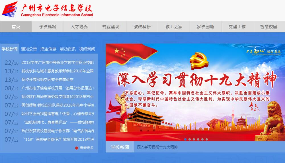 廣州市電子信息學(xué)校(原名廣州市電子職業(yè)高級(jí)中學(xué))創(chuàng)辦于1980年,是廣州市第一所國(guó)家級(jí)重點(diǎn)職業(yè)高中。學(xué)校遵循"守誠、精技、勵(lì)學(xué)、篤行"校訓(xùn),全面實(shí)施素質(zhì)教育,是一所內(nèi)涵豐富、特色鮮明的電子信息類現(xiàn)代化中等職業(yè)學(xué)校。辦學(xué)理念突顯品牌名校的四大特色。學(xué)校積極為學(xué)生搭建掌握高新技術(shù)的平臺(tái),專業(yè)設(shè)置高端前沿。物聯(lián)網(wǎng)技術(shù)應(yīng)用、衛(wèi)星定位技術(shù)、車聯(lián)網(wǎng)技術(shù)應(yīng)用、三維電子地圖制作、全數(shù)字化的網(wǎng)絡(luò)音響技術(shù)應(yīng)用、智能安防監(jiān)控技術(shù)、智能交通技術(shù)應(yīng)用、動(dòng)畫游戲創(chuàng)造、三維動(dòng)畫制作、3D打印技術(shù)應(yīng)用、影視作品拍攝與制作、微電影創(chuàng)作、移動(dòng)智能系統(tǒng)應(yīng)用、網(wǎng)絡(luò)技術(shù)應(yīng)用以及商務(wù)網(wǎng)站建設(shè)應(yīng)用等,用無限創(chuàng)意引領(lǐng)學(xué)生的學(xué)習(xí)與實(shí)踐,助推學(xué)生成長(zhǎng)為技術(shù)技能型人才。學(xué)校積極為學(xué)生搭建展現(xiàn)青春風(fēng)采的舞臺(tái),"藝術(shù)節(jié)"、"技能節(jié)"、"體育節(jié)"、"書香節(jié)"、"歡樂節(jié)"、"心理游園會(huì)"等品牌活動(dòng)和形式多樣的專業(yè)特色社團(tuán),創(chuàng)建寓教于樂、豐富精彩的校園生活,在綜合教育領(lǐng)域?yàn)閷W(xué)生打造"人生出彩"的平臺(tái),鋪設(shè) "就業(yè)有優(yōu)勢(shì),創(chuàng)業(yè)有基礎(chǔ),升學(xué)有希望,發(fā)展有基礎(chǔ)"的成才之路。學(xué)校與眾多高職院校建立長(zhǎng)期合作關(guān)系,學(xué)生可按照入學(xué)專業(yè)的三二分段中高職銜接模式,轉(zhuǎn)段升學(xué)到高職院校的相對(duì)應(yīng)專業(yè),還可通過高職院校自主招生、"3+證書"高職高考等形式升讀高職,升學(xué)路徑暢順、就業(yè)質(zhì)量高,學(xué)校歷屆畢業(yè)生升學(xué)就業(yè)率達(dá)到100%。學(xué)校積極為學(xué)生發(fā)展拓寬道路,自2011年起與新西蘭國(guó)立北方理工學(xué)院合作,通過學(xué)分互認(rèn)、課程對(duì)接、學(xué)術(shù)交流和共建特色教育班,輸送學(xué)生到新西蘭留學(xué)深造,實(shí)現(xiàn)電子信息類專業(yè)與國(guó)際接軌,提升辦學(xué)質(zhì)量,建設(shè)現(xiàn)代示范名校。