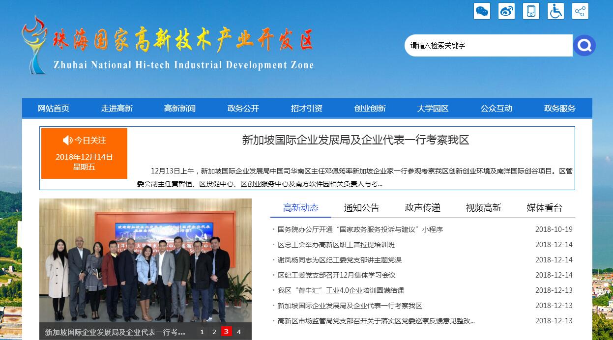 珠海高新區(qū)是1992年12月經(jīng)國務(wù)院批準(zhǔn)成立,1993年3月由國家科委(現(xiàn)科技部)授牌并進(jìn)行動態(tài)管理的國家級高新區(qū),由南屏科技工業(yè)園、三灶科技工業(yè)園、新青科技工業(yè)園和科技創(chuàng)新海岸組成。2006年7月,市委、市政府對珠海高新區(qū)和唐家灣鎮(zhèn)作出“區(qū)鎮(zhèn)合一”的體制調(diào)整,在唐家灣地區(qū)設(shè)立主園區(qū)。2015年9月,國務(wù)院又正式批復(fù)同意珠海高新區(qū)建設(shè)國家自主創(chuàng)新示范區(qū)。目前,珠海高新區(qū)正式形成“一區(qū)多園”格局,即唐家灣主園區(qū)、南屏科技工業(yè)園、三灶科技工業(yè)園、新青科技工業(yè)園、富山科技工業(yè)園、航空產(chǎn)業(yè)園以及橫琴高新技術(shù)和科研研發(fā)園區(qū)等,總面積合計369.34平方公里。區(qū)管委會設(shè)5個內(nèi)設(shè)機構(gòu),4個直屬機構(gòu),區(qū)屬事業(yè)單位22個,省市駐區(qū)單位7個,高校4所。區(qū)內(nèi)環(huán)境優(yōu)美,科技教育、歷史人文資源優(yōu)勢明顯。高新區(qū)主園區(qū)唐家灣鎮(zhèn)位于珠海市北部,由唐家、金鼎、淇澳組成,占地面積139平方公里。西部、北部與中山市接壤,南部、西南部與珠海前山東坑和珠海香洲神前相鄰。京珠高速、粵西沿海高速、廣珠城際輕軌等主要交通設(shè)施貫穿其中,是出入珠海的主要門戶,南距澳門18公里,北上廣州110公里,與香港、深圳隔海相望。下轄唐家等17個社區(qū),戶籍人口6.59萬人,常住人口約12.4萬人。唐家灣鎮(zhèn)是中國歷史文化名鎮(zhèn),歷史名人輩出,工運領(lǐng)袖蘇兆征、民國首任內(nèi)閣總理唐紹儀、首任清華學(xué)校(清華大學(xué)前身)校長唐國安、洋務(wù)運動先驅(qū)唐廷樞、著名版畫家古元、中國第一位留英醫(yī)學(xué)博士黃寬、粵劇鬼才唐滌生等名人均出自唐家灣;歷史文化遺產(chǎn)豐富,有唐家古鎮(zhèn)、會同古村等古建筑群、唐紹儀私家園林共樂園、中西合璧的棲霞仙館、承載著中國人民抗英勝利歷史的淇澳白石街及眾多珍貴的名人故居,被譽為“中國近代名人故里”“嶺南百年文化古鎮(zhèn)”。高新區(qū)作為珠海市建設(shè)國家自主創(chuàng)新示范區(qū)主平臺和創(chuàng)新驅(qū)動主引擎,其主園區(qū)已形成以名牌大學(xué)為依托,以軟件研發(fā)企業(yè)為主體,集“產(chǎn)學(xué)研政孵投”于一體的高科技產(chǎn)業(yè)走廊,重點發(fā)展智慧產(chǎn)業(yè)、軟件和集成電路設(shè)計、互聯(lián)網(wǎng)和移動互聯(lián)網(wǎng)、智能電網(wǎng)裝備和新能源、生物醫(yī)藥和醫(yī)療器械、智能制造和機器人等主導(dǎo)產(chǎn)業(yè)。智能配電網(wǎng)裝備產(chǎn)業(yè)集群升級為國家級創(chuàng)新型產(chǎn)業(yè)集群試點,唐家灣鎮(zhèn)入選廣東省首批“互聯(lián)網(wǎng)+”創(chuàng)建小鎮(zhèn)。區(qū)內(nèi)共有南方軟件園等9個孵化器,其中國家級孵化器4個。南方軟件園獲評優(yōu)秀國家級科技企業(yè)孵化器、“國家小型微型企業(yè)創(chuàng)業(yè)創(chuàng)新示范基地”“2017年中國最具活力軟件園”稱號,清華科技園獲評優(yōu)秀國家級科技企業(yè)孵化器。擁有新型研發(fā)機構(gòu)和公共技術(shù)平臺28家,由企業(yè)組建的各級工程中心70家。擁有政府天使投資、創(chuàng)投基金、融資擔(dān)?;?,高新天使創(chuàng)業(yè)投資機構(gòu)、高新創(chuàng)業(yè)投資機構(gòu)、國有融資擔(dān)保公司和“成長之翼”助貸、全市首個中小企業(yè)創(chuàng)新發(fā)展能力及信用評估等科技金融服務(wù)平臺。擁有全國首家國家高新區(qū)知識產(chǎn)權(quán)法庭和知識產(chǎn)權(quán)檢察室。擁有中山大學(xué)珠海校區(qū)等4所國內(nèi)著名大學(xué),在校大學(xué)生近7萬人。2017年,全區(qū)規(guī)模以上工業(yè)企業(yè)127家,高新技術(shù)企業(yè)352家,上市及“新三板”掛牌企業(yè)40家。主要經(jīng)濟(jì)指標(biāo)持續(xù)保持兩位數(shù)增長。實現(xiàn)地區(qū)生產(chǎn)總值214.59億元,增長10.5%;規(guī)模以上工業(yè)增加值106.6億元,增長11%;固定資產(chǎn)投資123.4億元,增長22.8%;社會消費品零售總額73.4億元,增長11%;實際利用外資2.0億美元,增長3.2%;外貿(mào)進(jìn)出口376.8億元,增長74%;一般公共預(yù)算收入16.2億元,增長11.6%?!耙粎^(qū)多園”實現(xiàn)工業(yè)總產(chǎn)值2400億元,增長8%;高新技術(shù)企業(yè)660家,產(chǎn)值1920億元,增長14%。珠海高新區(qū)在全國國家級高新區(qū)綜合評價排名上升到第24位。高新區(qū)社會各項事業(yè)全面協(xié)調(diào)發(fā)展。2017年民生投入達(dá)22.8億元,同比增長49%,占一般公共預(yù)算支出84.5%。唐家灣鎮(zhèn)被評為“廣東省模范鄉(xiāng)鎮(zhèn)黨委”、“廣東省文明鎮(zhèn)”、“中國歷史文化名鎮(zhèn)”、榮獲“全國環(huán)境優(yōu)美鎮(zhèn)”、“廣東省衛(wèi)生鎮(zhèn)”、“廣東省生態(tài)示范鎮(zhèn)”。社會治安穩(wěn)定,社會和諧,群眾安全感、滿意度在全市排名第一。