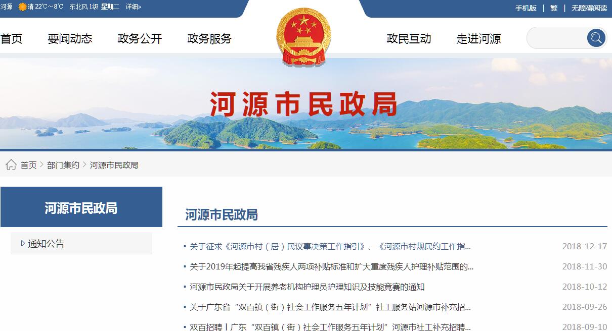 河源市民政局要職責:(一)貫徹執(zhí)行國家、省有關民政工作的方針政策和法律法規(guī),起草有關文件草案,并組織實施和監(jiān)督檢查。擬訂民政事業(yè)和民政系統(tǒng)的社會工作發(fā)展規(guī)劃,推進民政事業(yè)發(fā)展和民政系統(tǒng)社會工作人才隊伍建設和相關志愿者隊伍建設。(二)負責退役士兵、復員干部的接收安置工作和軍隊移交地方管理的離退休干部、退休士官和軍隊無軍籍退休退職職工的接收安置、服務管理工作;負責撫恤優(yōu)待、評殘評烈、殘疾軍人安置、烈士褒揚和犧牲病故部隊干部的家屬安置工作;組織和協(xié)調(diào)擁軍優(yōu)屬工作。(三)負責組織、協(xié)調(diào)城鄉(xiāng)救災工作,組織自然災害救助應急體系建設,負責組織核查并統(tǒng)一發(fā)布災情,管理、分配和監(jiān)督市級救災款物。(四)負責城鄉(xiāng)居民最低生活保障、醫(yī)療救助、臨時救助、流浪乞討及生活無著人員救助工作,健全城鄉(xiāng)社會救助體系;指導農(nóng)村五保戶供養(yǎng)、敬老院建設工作。(五)負責全市鎮(zhèn)(鄉(xiāng))以上行政區(qū)域的設立、撤銷、調(diào)整、更名、界線變更以及政府駐地遷移的審核報批工作,負責市際行政區(qū)域界線的勘定和管理,負責邊界爭議的調(diào)處事務,組織編制地名規(guī)劃,負責地名命名、更名、銷名審核工作,規(guī)范地名標志設置和管理工作。(六)提出加強和改進城鄉(xiāng)基層政權建設的建議,推動基層民主政治建設,指導城鄉(xiāng)基層群眾自治組織建設、城鄉(xiāng)社區(qū)建設和城鄉(xiāng)社區(qū)服務體系建設。(七)負責社會福利機構的監(jiān)督管理,促進慈善事業(yè)發(fā)展,指導社會捐助工作,指導老年人、孤兒和殘疾人等特殊群體權益保障工作。(八)負責推進婚俗和殯葬改革,負責收養(yǎng)登記管理工作,指導婚姻、殯葬、收養(yǎng)、救助服務機構管理工作。(九)負責依法對社會團體、基金會、民辦非企業(yè)單位進行登記管理和監(jiān)察的責任,查處非法社會組織和社會組織的非法活動。(十)負責市老齡委員會日常工作。(十一)負責管理福利彩票銷售工作,負責管理、使用、發(fā)放福利資金和民政事業(yè)費。(十二)承辦市人民政府和上級民政部門交辦的其他事項。