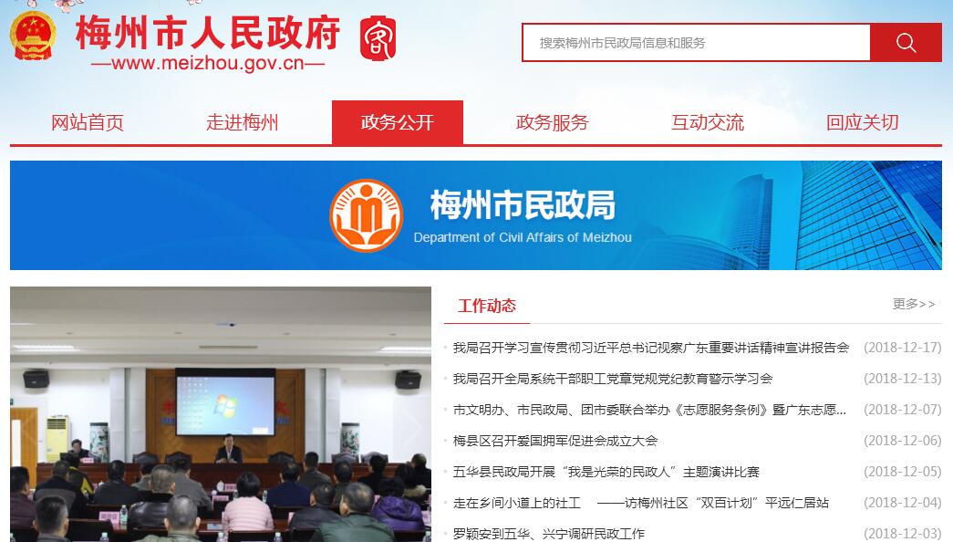 根據(jù)《中共梅州市委、梅州市人民政府關(guān)于印發(fā)〈梅州市人民政府機(jī)構(gòu)改革方案〉的通知》,設(shè)立梅州市民政局,為市人民政府工作部門。其主要職責(zé):(一)貫徹執(zhí)行國(guó)家、省有關(guān)民政工作的方針政策和法律法規(guī),擬訂民政事業(yè)發(fā)展規(guī)劃和相關(guān)的民政規(guī)范性文件,并組織實(shí)施和監(jiān)督檢查。(二)負(fù)責(zé)退役士兵、復(fù)員干部的接收安置工作和軍隊(duì)移交地方管理的離退休干部、退休士官和軍隊(duì)無(wú)軍籍退休退職職工的接收安置、服務(wù)管理工作;負(fù)責(zé)撫恤優(yōu)待、評(píng)殘?jiān)u烈、殘疾軍人安置、烈士褒揚(yáng)和犧牲病故部隊(duì)干部的家屬安置工作;組織和指導(dǎo)擁軍優(yōu)屬工作。(三)負(fù)責(zé)組織、協(xié)調(diào)城鄉(xiāng)救災(zāi)工作,組織自然災(zāi)害救助應(yīng)急體系建設(shè),負(fù)責(zé)組織核查并統(tǒng)一發(fā)布災(zāi)情,管理、分配和監(jiān)督市級(jí)救災(zāi)款物。(四)負(fù)責(zé)城鄉(xiāng)居民最低生活保障、醫(yī)療救助、臨時(shí)救助、流浪乞討及生活無(wú)著人員救助工作,健全城鄉(xiāng)社會(huì)救助體系。(五)負(fù)責(zé)擬訂全市鎮(zhèn)以上行政區(qū)域的設(shè)立、撤銷、調(diào)整、更名、界線變更以及政府駐地遷移的方案及申報(bào)工作,負(fù)責(zé)市際行政區(qū)域界線的勘定和管理,負(fù)責(zé)邊界爭(zhēng)議的調(diào)處事務(wù),組織編制地名規(guī)劃,負(fù)責(zé)地名命名、更名、銷名審核工作,規(guī)范地名標(biāo)志設(shè)置和管理工作。(六)提出加強(qiáng)和改進(jìn)城鄉(xiāng)基層政權(quán)建設(shè)的建議,推動(dòng)基層民主政治建設(shè),指導(dǎo)城鄉(xiāng)基層群眾自治組織建設(shè)、城鄉(xiāng)社區(qū)建設(shè)和城鄉(xiāng)社區(qū)服務(wù)體系建設(shè)。(七)負(fù)責(zé)社會(huì)福利機(jī)構(gòu)的監(jiān)督管理,促進(jìn)慈善事業(yè)發(fā)展,指導(dǎo)社會(huì)捐助工作,指導(dǎo)老年人、孤兒和殘疾人等特殊群體權(quán)益保障工作。(八)負(fù)責(zé)推進(jìn)婚俗和殯葬改革,負(fù)責(zé)收養(yǎng)登記管理工作,指導(dǎo)婚姻、殯葬、收養(yǎng)、救助服務(wù)機(jī)構(gòu)管理工作。(九)承擔(dān)依法對(duì)社會(huì)團(tuán)體、基金會(huì)、民辦非企業(yè)單位進(jìn)行登記管理和監(jiān)察的責(zé)任。(十)會(huì)同有關(guān)部門擬訂民政系統(tǒng)的社會(huì)工作發(fā)展規(guī)劃、政策和職業(yè)規(guī)范,推進(jìn)民政系統(tǒng)社會(huì)工作人才隊(duì)伍建設(shè)和相關(guān)志愿者隊(duì)伍建設(shè)。(十一)負(fù)責(zé)管理福利彩票銷售工作,負(fù)責(zé)管理、使用、發(fā)放福利資金和民政事業(yè)費(fèi)。(十二)承辦市委、市人民政府和上級(jí)業(yè)務(wù)主管部門交辦的其他事項(xiàng)。