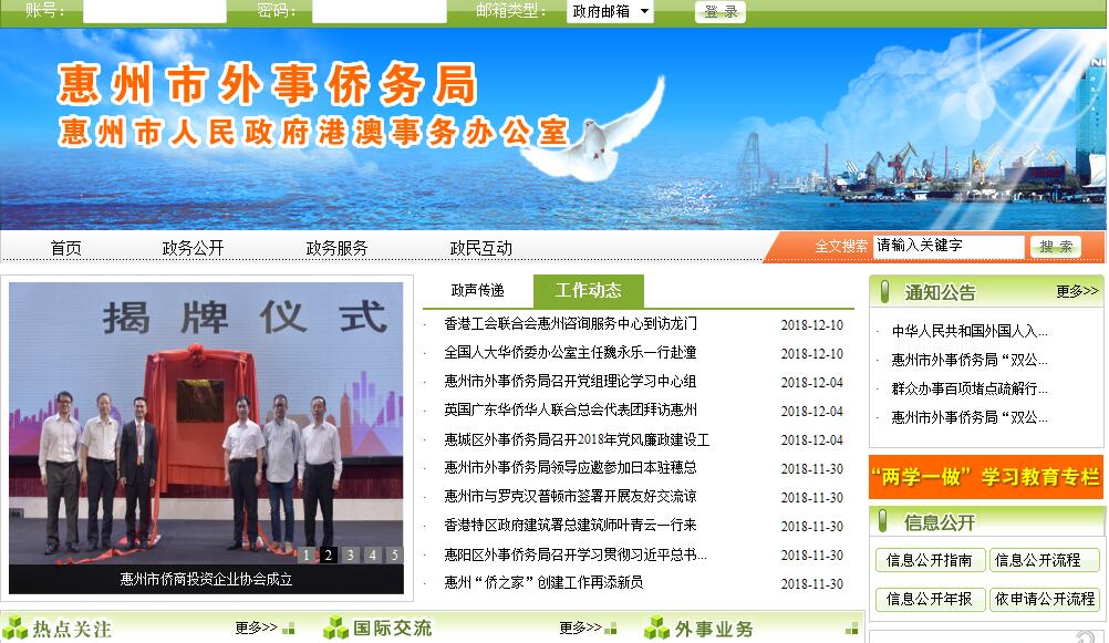 惠州市外事僑務(wù)局是惠州市人民政府主管外事僑務(wù)工作的職能部門。其主要職責(zé)是:(1)貫徹執(zhí)行黨和國家的外事、僑務(wù)、港澳工作方針、政策,貫徹落實省委、省政府外事、僑務(wù)和港澳工作的政策、法規(guī)和任務(wù),當(dāng)好市委、市政府外事僑務(wù)港澳工作的參謀。(2)負責(zé)因公臨時出訪管理工作;承辦因公出訪的審核、報批事項;辦理因公出國、赴港澳人員的護照(通行證)領(lǐng)發(fā)、簽證(簽注)工作;按規(guī)定辦理外國人員入境來惠的報批簽證工作。(3)協(xié)同有關(guān)部門做好華僑、外籍華人、港澳同胞及其社團的接待聯(lián)絡(luò)工作;組織接待外國訪惠的重要來賓,接待和管理來惠從事公務(wù)活動的各國外交人員和外國記者;承辦市領(lǐng)導(dǎo)的對外交往事宜。(4)做好華僑、外籍華人、港澳同胞的資金、人才、技術(shù)項目的引進工作,并對已引進的重點僑資項目進行跟蹤服務(wù);依法支持歸僑、僑眷企業(yè)和為僑服務(wù)企業(yè)的發(fā)展;負責(zé)華僑、港澳同胞捐贈款物的審核、審批、管理以及監(jiān)督工作。(5)依法保護華僑、歸僑、僑眷的合法權(quán)益;做好歸難僑的扶貧、救濟工作;受理華僑回國安置和港澳同胞回內(nèi)地定居工作。(6)負責(zé)開展與外國的友好城市及其他對外友好活動;協(xié)調(diào)和指導(dǎo)各縣(區(qū))、市直各部門重要外事活動,監(jiān)督檢查執(zhí)行外事紀律情況;會同有關(guān)部門研究處理涉外事宜;執(zhí)行對外宣傳的方針和政策,做好外事僑務(wù)對外宣傳工作。(7)配合有關(guān)部門通過僑務(wù)工作渠道開展統(tǒng)戰(zhàn)和對臺工作。(8)負責(zé)協(xié)調(diào)我市重要港澳活動;協(xié)調(diào)處理我市涉港澳事務(wù);承辦我市與港澳官方、半官方、重要民間交往事務(wù)的報批和管理工作。承辦廣東省港澳工作協(xié)調(diào)領(lǐng)導(dǎo)小組辦公室、廣東省人民政府港澳事務(wù)辦公室交辦的工作任務(wù)。(9)承辦市人民政府和上級有關(guān)部門交辦的其他事項。