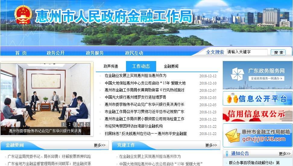 根據(jù)《中共惠州市委、惠州市人民政府關(guān)于印發(fā)〈惠州市人民政府機構(gòu)改革方案〉的通知》(惠市委發(fā)〔2009〕25號),惠州市人民政府金融工作局為正處級單位,設(shè)在市人民政府辦公室。主要職責(zé)包括:(一)貫徹執(zhí)行國家和省關(guān)于金融工作的方針、政策和法律、法規(guī);擬訂全市金融產(chǎn)業(yè)發(fā)展綱要與規(guī)劃并組織實施;指導(dǎo)全市金融改革創(chuàng)新發(fā)展。(二)負責(zé)培育和發(fā)展農(nóng)村金融體系,承擔(dān)對小額貸款公司、融資性擔(dān)保機構(gòu)準(zhǔn)入、組建、市場監(jiān)管和風(fēng)險處置工作,會同有關(guān)部門防范化解地方金融國有資產(chǎn)風(fēng)險。(三)培育、發(fā)展多層次資本市場,監(jiān)管產(chǎn)權(quán)交易、柜臺交易市場等區(qū)域金融市場;負責(zé)推進企業(yè)改制上市工作,推動企業(yè)與風(fēng)險投資基金對接融資,參與協(xié)調(diào)發(fā)行地方政府債券等相關(guān)融資工作。(四)協(xié)調(diào)和支持省駐惠金融監(jiān)管機構(gòu)對各銀行、證券、期貨、保險、信托等金融機構(gòu)及行業(yè)自律組織的監(jiān)管以及防范、處置、化解金融機構(gòu)的金融風(fēng)險問題,建立金融風(fēng)險預(yù)警體系,組織協(xié)調(diào)實施金融突發(fā)事件應(yīng)急工作,配合有關(guān)部門查處、打擊非法金融機構(gòu)和非法金融業(yè)務(wù)活動。(五)開展金融對外交流與合作。(六)協(xié)調(diào)和落實地方人民政府與金融機構(gòu)的戰(zhàn)略合作。(七)承辦市人民政府及省人民政府金融辦交辦的其他事項。