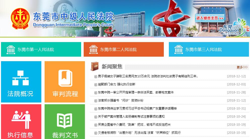 東莞市中級人民法院(以下簡稱東莞中院)成立于1988年3月,1989年1月1日正式掛牌辦公。東莞中院現(xiàn)下轄三個基層法院,分別是東莞市第一、第二、第三人民法院。三個基層法院下設(shè)21個派出人民法庭。目前,東莞中院共有在編干警254人,其中入額法官98人,本科以上學(xué)歷占96%。全市法院共有在編干警982人,其中入額法官478人,本科以上學(xué)歷占97%,平均年齡35歲。2017年,全市法院共受理各類案件182833件,辦結(jié)160163件,解決訴訟標(biāo)的金額628.78億元,分別同比增長9.01%、11.75%和10.12%;其中東莞中院受理案件22357件,辦結(jié)19815件,分別同比增長10.27%和18.84%。全市法院法官人均結(jié)案335件,同比上升15%。2018年1月20日,在市十六屆人大三次會議上,東莞中院工作報告獲全票通過。近年來,東莞中院執(zhí)行局、司法警察支隊、刑二庭、刑一庭先后獲得“全國法院先進(jìn)集體”榮譽(yù)稱號。東莞第一法院獲得“全國模范法院”榮譽(yù)稱號。東莞第二法院被評為“全國法院文化建設(shè)示范單位”。東莞第三法院獲得“全國優(yōu)秀法院”榮譽(yù)稱號。東城法庭先后獲得“全國十佳人民法庭”、“全國青年文明號”、“全國巾幗建功先進(jìn)集體”等多項全國性榮譽(yù)稱號。2018年,根據(jù)上級法院要求和市委工作部署,全市法院的總體工作思路是,以習(xí)近平新時代中國特色社會主義思想為指導(dǎo),深入學(xué)習(xí)貫徹黨的十九大精神,緊緊圍繞全市中心工作,以提高辦案質(zhì)效為中心,以加強(qiáng)隊伍建設(shè)為基礎(chǔ),以深化司法改革為動力,不斷提升司法公信力,努力開創(chuàng)全市法院工作新局面,為東莞在更高起點上實現(xiàn)更高水平發(fā)展提供有力司法保障和司法服務(wù)。
