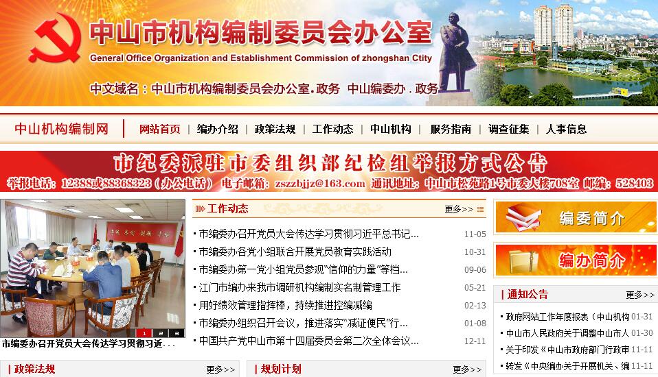 根據(jù)省編委《關于印發(fā)中山市人民政府機構改革方案的通知》(粵機編〔2009〕34號),設立中山市機構編制委員會辦公室(以下簡稱市編委辦),正處級。市編委辦為市機構編制委員會常設辦事機構,既是市委工作部門,又是市政府工作部門,列市委機構序列。 其主要職責:(一)貫徹執(zhí)行黨中央、國務院和省委、省政府以及市委、市政府有關行政管理體制和機構改革以及機構編制管理的方針政策和法律法規(guī);擬訂機構編制管理有關政策和規(guī)范性文件,統(tǒng)一管理市直機關(含黨委、政府各部門,人大、政協(xié)、法院、檢察院機關,民主黨派和人民團體機關,以及其他行政機構,下同)、鎮(zhèn)區(qū)機關和全市事業(yè)單位機構編制。(二)負責擬訂本市行政管理體制和機構改革總體方案并組織實施,審核市直機關和鎮(zhèn)區(qū)機關機構改革方案。(三)審核市直機關和鎮(zhèn)區(qū)機關的職責配置、機構設置、人員編制和領導職數(shù),包括機關內(nèi)設機構的設立、撤銷、調(diào)整。(四)協(xié)調(diào)市直機關之間、市直機關與鎮(zhèn)區(qū)之間的職責分工。(五)負責擬訂本市事業(yè)單位管理體制和機構改革總體方案并組織實施。(六)監(jiān)督檢查市直機關、鎮(zhèn)區(qū)機關行政管理體制和機構改革方案,事業(yè)單位管理體制和機構改革方案的實施情況以及機構編制政策法規(guī)的執(zhí)行情況;牽頭組織實施機構編制實名制管理工作。(七)負責本市事業(yè)單位登記管理工作。(八)承辦上級交辦的其他事項。