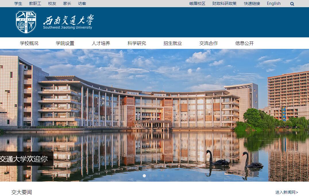 西南交通大學(xué)是教育部直屬全國重點(diǎn)大學(xué),國家首批“雙一流”“211工程”“特色985工程”“2011計(jì)劃”重點(diǎn)建設(shè)并設(shè)有研究生院的研究型大學(xué),坐落于中國歷史文化名城、國家中心城市——成都。學(xué)校創(chuàng)建于1896年,前身為山海關(guān)北洋鐵路官學(xué)堂(Imperial Chinese Railway College),是中國第一所工程高等學(xué)府,中國土木工程、交通工程、礦冶工程高等教育的發(fā)祥地,“交通大學(xué)”最早兩大源頭之一,以“唐山交大”“唐院”之名享譽(yù)中外,素有“東方康奈爾”之美譽(yù),毛澤東同志為學(xué)校題寫了校名。建校以來,學(xué)校先后定名交通大學(xué)唐山工(程)學(xué)院、國立交通大學(xué)貴州分校、中國交通大學(xué)、北方交通大學(xué)、唐山鐵道學(xué)院等。1952年全國高等學(xué)校院系調(diào)整,學(xué)校部分系科師資調(diào)入清華大學(xué)、天津大學(xué)等兄弟院校,1964年根據(jù)中央建設(shè)“大三線”精神內(nèi)遷四川,1972年更名西南交通大學(xué),1989年遷成都。現(xiàn)有九里、犀浦、峨眉三個(gè)校區(qū),占地5000余畝,犀浦校區(qū)為主校區(qū)。在122年的辦學(xué)歷程中,學(xué)校始終堅(jiān)守大學(xué)使命、服務(wù)國家社會(huì),逐漸形成了“竢實(shí)揚(yáng)華、自強(qiáng)不息”的交大精神,“嚴(yán)謹(jǐn)治學(xué)、嚴(yán)格要求”的“雙嚴(yán)”傳統(tǒng)和“精勤求學(xué)、敦篤勵(lì)志、果毅力行、忠恕任事”的校訓(xùn),培養(yǎng)和造就了以茅以升、竺可楨、林同炎、黃萬里等為代表30余萬棟梁英才,師生中產(chǎn)生了3位“兩彈一星”元?jiǎng)住?0位海內(nèi)外院士和24位國家工程勘察設(shè)計(jì)大師,改革開放以來軌道交通領(lǐng)域產(chǎn)生的院士幾乎全部出自我校。鄧小平同志給予學(xué)校高度評(píng)價(jià):“這所學(xué)校出了不少人才”。學(xué)校以工見長,形成了工、理、文、生四大學(xué)科群,設(shè)有26個(gè)學(xué)院,1個(gè)中外合作辦學(xué)學(xué)院、1家附屬醫(yī)院(成都市第三人民醫(yī)院)、2個(gè)異地研究生院(青島研究生院、唐山研究生院),與成都軍區(qū)總醫(yī)院共建醫(yī)學(xué)院,擁有機(jī)械工程、交通運(yùn)輸工程2個(gè)一級(jí)學(xué)科國家重點(diǎn)學(xué)科,車輛工程、橋梁與隧道工程等10個(gè)二級(jí)學(xué)科國家重點(diǎn)學(xué)科,19個(gè)一級(jí)學(xué)科博士學(xué)位授權(quán)點(diǎn),39個(gè)一級(jí)學(xué)科碩士學(xué)位授權(quán)點(diǎn),11個(gè)博士后科研流動(dòng)站。交通運(yùn)輸工程學(xué)科位居全國第一(A+)并進(jìn)入國家“雙一流”建設(shè)序列,土木工程學(xué)科位居全國第七(A-),材料科學(xué)、工程學(xué)、計(jì)算機(jī)科學(xué)進(jìn)入ESI世界排名前1%。學(xué)校建有軌道交通國家實(shí)驗(yàn)室(籌)、牽引動(dòng)力國家重點(diǎn)實(shí)驗(yàn)室等12個(gè)國家級(jí)科技創(chuàng)新平臺(tái)和36個(gè)省部級(jí)科研基地,構(gòu)建起了世界軌道交通領(lǐng)域最完備的學(xué)科體系、人才體系和科研體系,圍繞高速鐵路、磁浮交通,新型城軌、真空管道超高速(1000+)、超級(jí)高鐵等領(lǐng)域大力開展基礎(chǔ)研究與原始創(chuàng)新,構(gòu)建了以世界公認(rèn)的“沈氏理論”和“翟孫模型”為標(biāo)志的鐵路大系統(tǒng)動(dòng)力學(xué)基礎(chǔ)研究體系,科技成果三次入選“中國高校十大科技進(jìn)展”。在軌道交通領(lǐng)域獲得的國家科技獎(jiǎng)勵(lì)總數(shù)位居全國高校、科研院所和行業(yè)企業(yè)第一,為中國軌道交通事業(yè)發(fā)展做出了不可磨滅的貢獻(xiàn)。此外,學(xué)校還在國防科技、智能制造、生物醫(yī)藥、大數(shù)據(jù)以及物理科學(xué)、人文社科等領(lǐng)域取得了許多重要成果。學(xué)?,F(xiàn)有專任教師2568人,其中中國科學(xué)院院士7人、中國工程院院士14人、國家“千人計(jì)劃”16人、“萬人計(jì)劃”11人、 “長江學(xué)者”29人、“杰青”22人、“青千”10人、“優(yōu)青”3人、“青托”4人,國家級(jí)教學(xué)團(tuán)隊(duì)8個(gè)、國家級(jí)教學(xué)名師5人,國家級(jí)、教育部和科技部創(chuàng)新團(tuán)隊(duì)10個(gè)。此外,還聘請(qǐng)了42位中國科學(xué)院、工程院院士以及5名諾貝爾獎(jiǎng)獲得者擔(dān)任兼職(名譽(yù))教授。學(xué)校構(gòu)建起“價(jià)值塑造、人格養(yǎng)成、能力培養(yǎng)、知識(shí)探究”四維一體拔尖創(chuàng)新人才培養(yǎng)體系,全面實(shí)施本科生大類培養(yǎng),建有茅以升學(xué)院(唐臣書院)、詹天佑學(xué)院、竺可楨書院等,培養(yǎng)拔尖創(chuàng)新人才。學(xué)校現(xiàn)有全日制本科生25105人、碩士研究生17879人、博士研究生2863人、留學(xué)生852人。擁有國家級(jí)虛擬仿真實(shí)驗(yàn)教學(xué)中心3個(gè)、國家級(jí)實(shí)驗(yàn)教學(xué)示范中心8個(gè);承擔(dān)國家教育體制改革試點(diǎn)項(xiàng)目4項(xiàng);獲國家級(jí)教學(xué)成果獎(jiǎng)25項(xiàng),其中特等獎(jiǎng)1項(xiàng)、一等獎(jiǎng)6項(xiàng),位居全國第九。有國家級(jí)精品課程36門,國家級(jí)精品資源共享課24門,國家級(jí)精品視頻公開課8門。學(xué)校堅(jiān)持國際化辦學(xué),同美國伊利諾
